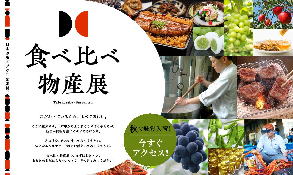 その技を是非食べて比べてお楽しみください。食べ比べ物産展限定の今の時期しか食べられない季節の食べ比べセット等、 様々な企画や商品をご用意しております。