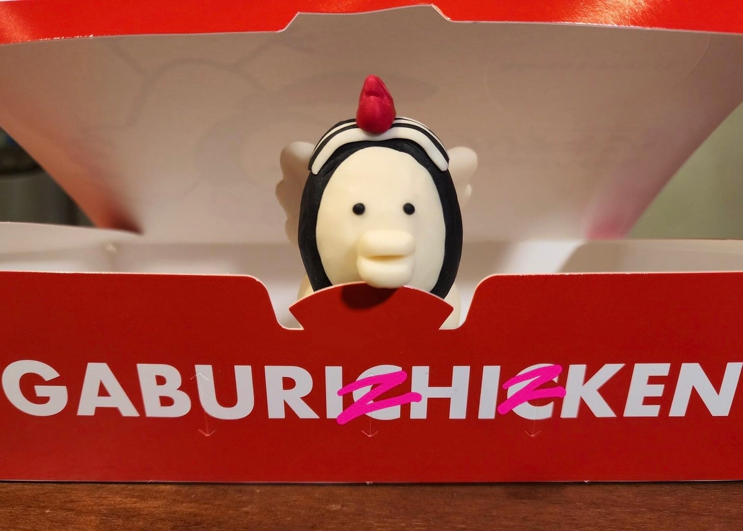 投稿写真例:がブリチキン。テイクアウトボックス側面のCをペンなどで消して投稿