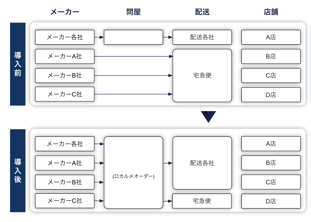 また、配送業務をシンプルにすることにより、飲食事業者の仕入れ業務の負荷を低減させることができます。
