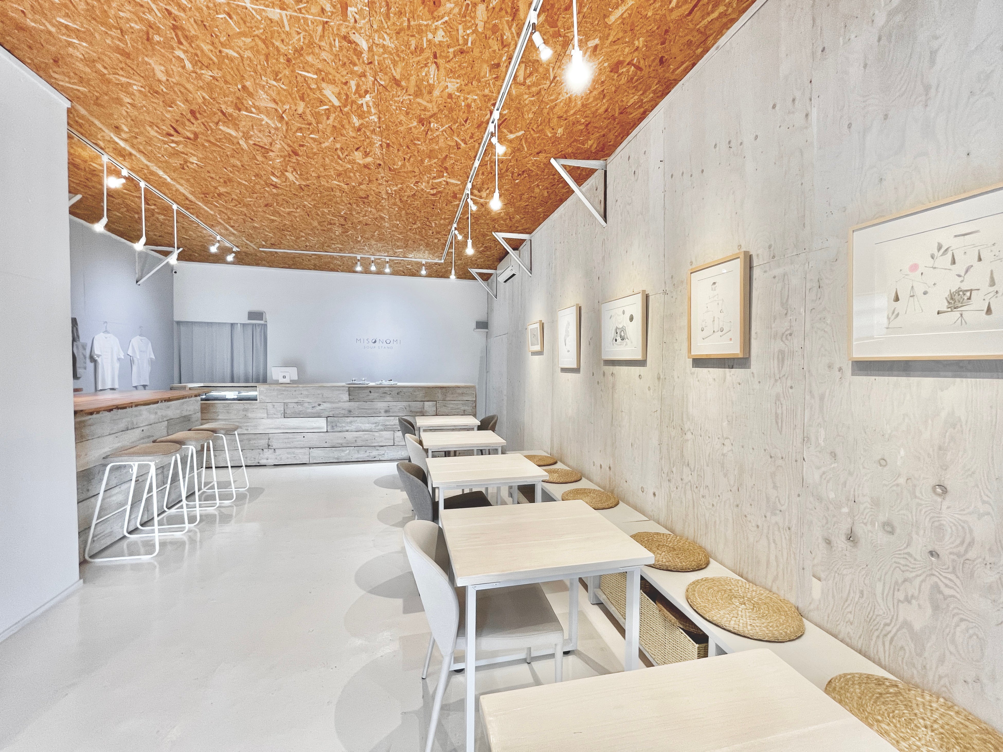 かつてはギャラリー空間だった店内では、さわひらき、岩井優、坂野充学などの現代アーティストによる作品展示と合わせてミソノミが展示されており、「アート」と「食」がボーダレスで楽しめ空間となっています。