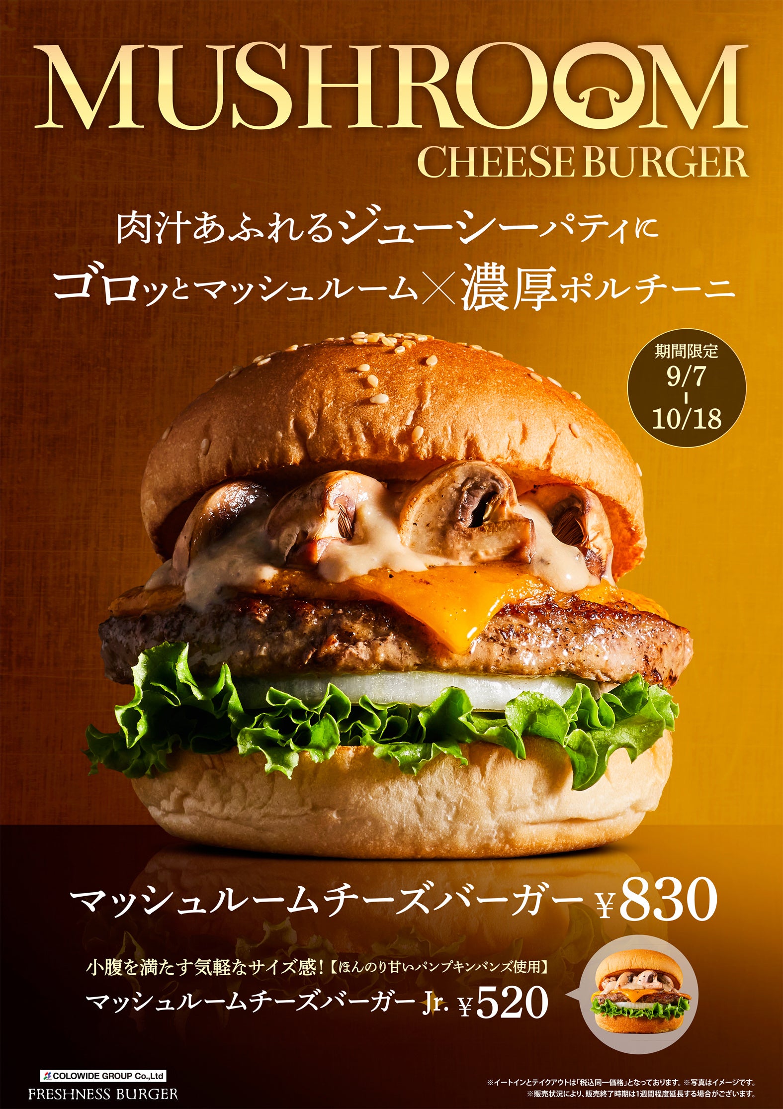 気軽に食べられるサイズ感が魅力の『マッシュルームチーズバーガーJr.』も同時販売。