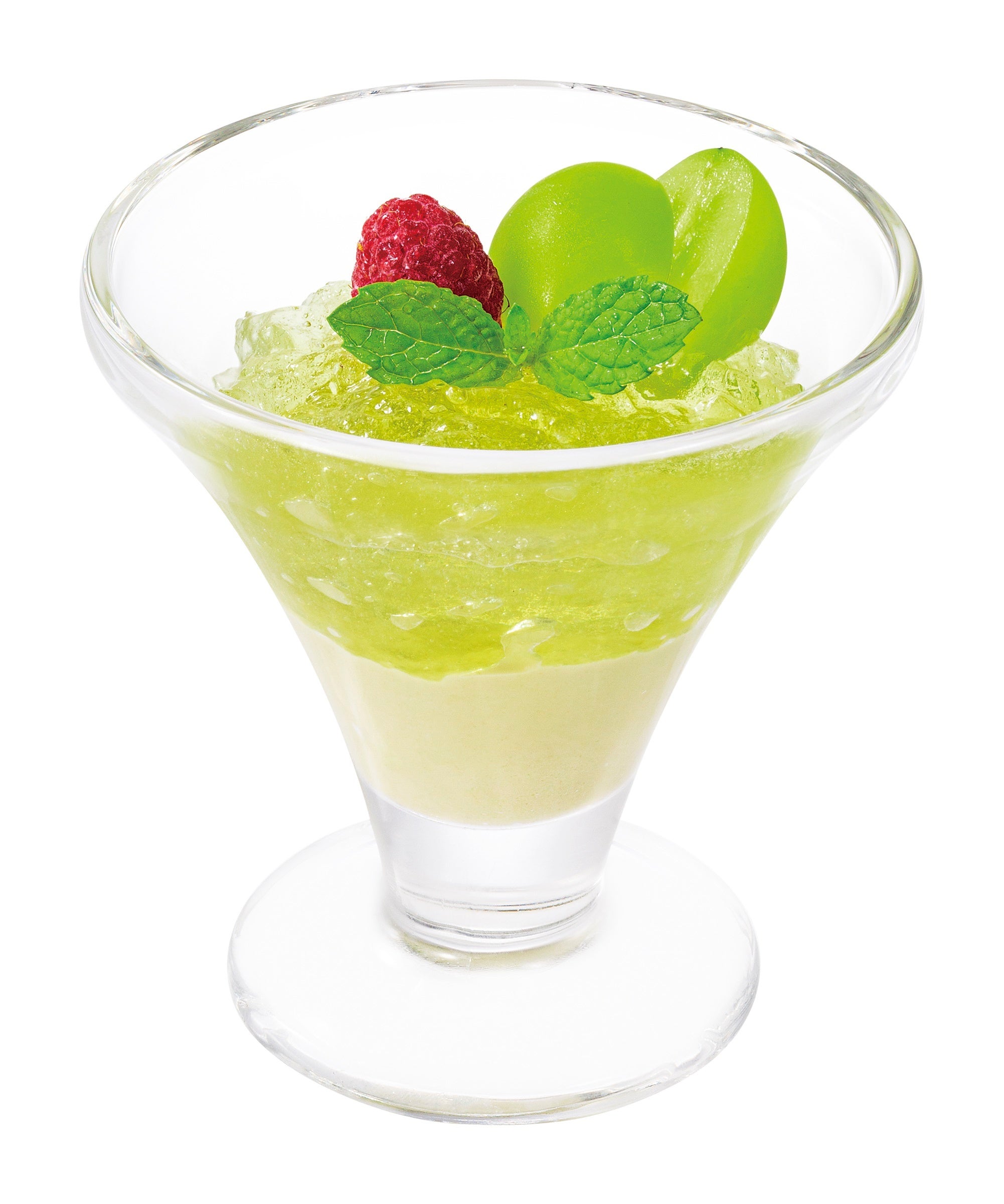 つややかな果実が華麗に彩る、シャインマスカットのザ・サンデー。みずみずしい果実を8粒分、贅沢に使用しました。旬のシャインマスカットは上品な香りと濃厚な甘味が格別! 種がなく、皮ごとあますことなくお楽しみいただけます。そのほかにも、清涼感あふれるゼリー、さっぱりとしたソルベ、なめらかなクリーム、フルーティーなソースなど、白ぶどうの魅力を味わう素材が盛りだくさん。どこから食べても、最後まで、白ぶどうの爽やかな風味につつまれる、幸せ気分のデザートです。