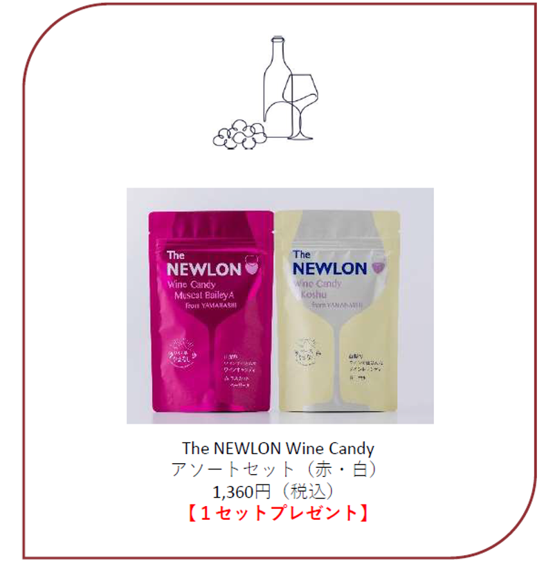 期間中「The NEWLON Candy Shop」のWEB通販でワインキャンデイをお買い上げの方全員にワインキャンデイ アソートセット(赤白各1袋)1セットプレゼントキャンペーンを開催!
