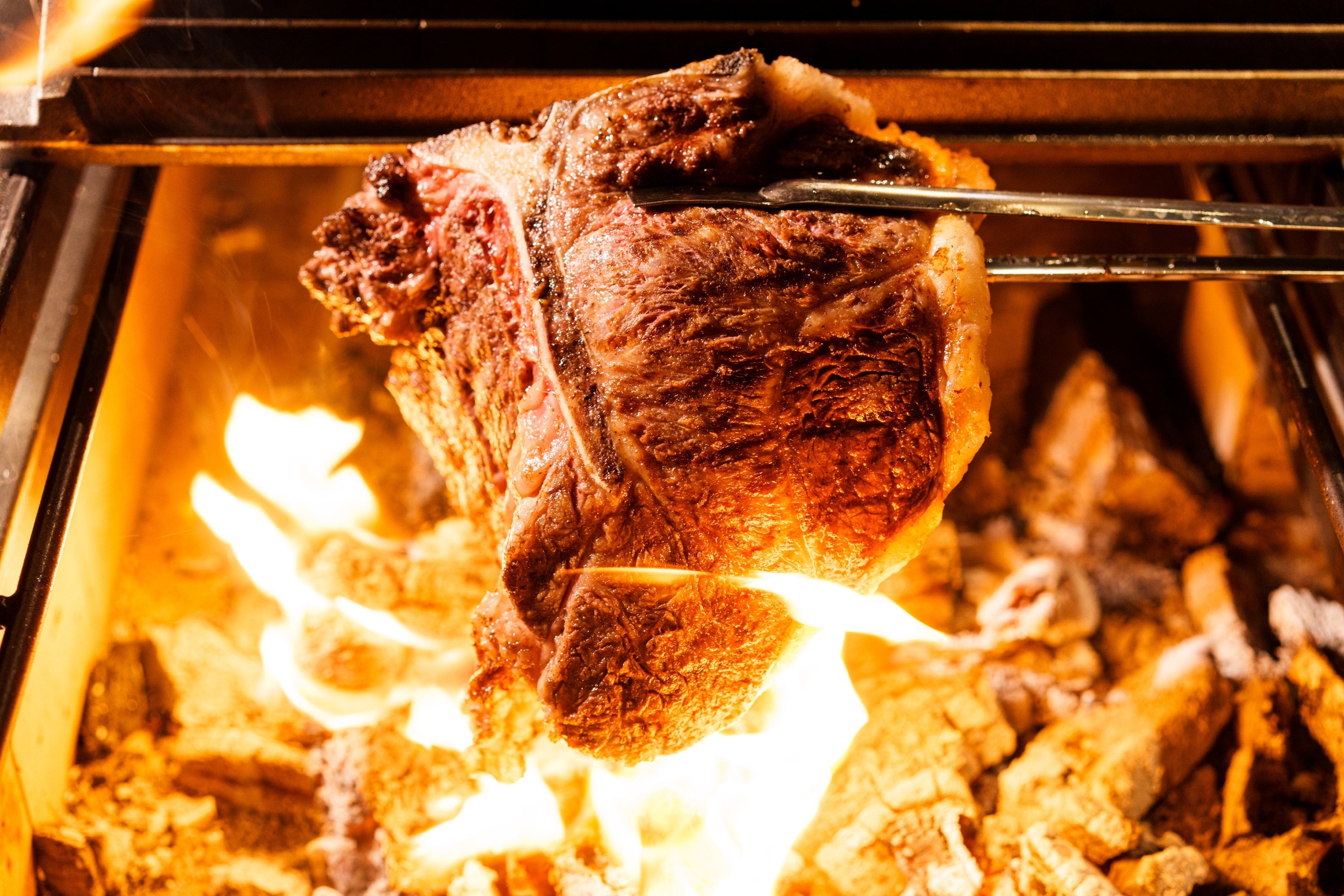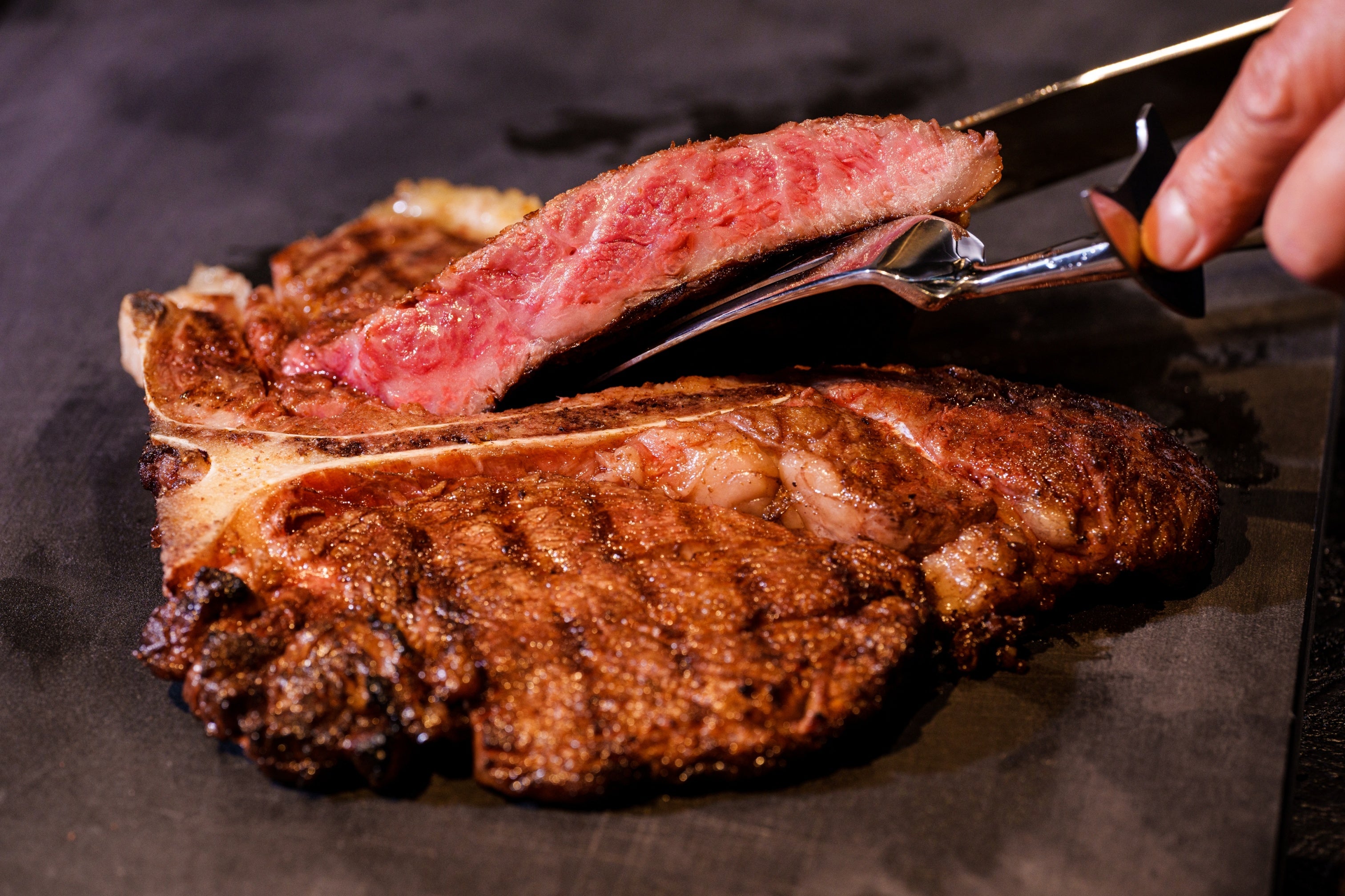 北新地にて、予約1年待ちの店舗『U.kai』など様々な人気店を世に生み出した、肉の魔術師『服部融快シェフ』プロデュース。非常に珍しい近江牛のTボーンステーキがメイン。