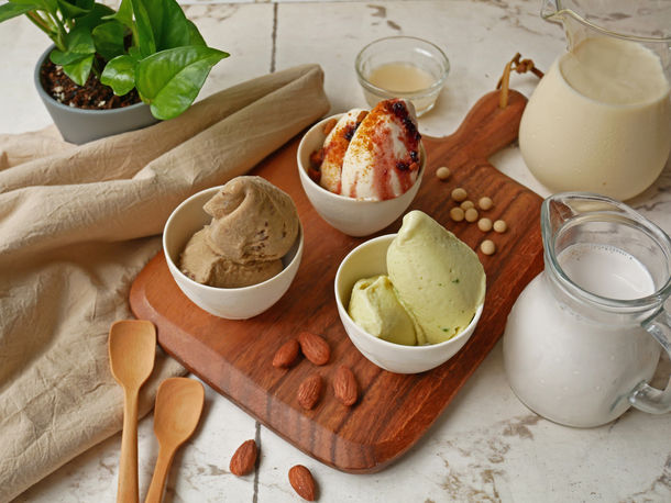 牛乳、卵のコクのある味わいを活かしてきたジェラート専門店だからこそ、代替食材の選択にはこだわっています。無調整有機豆乳をベースにノンアルコールの糀甘酒、大豆バターを使うことで、すっきりし過ぎないコク、やさしい甘さのあるジェラートを作りました。