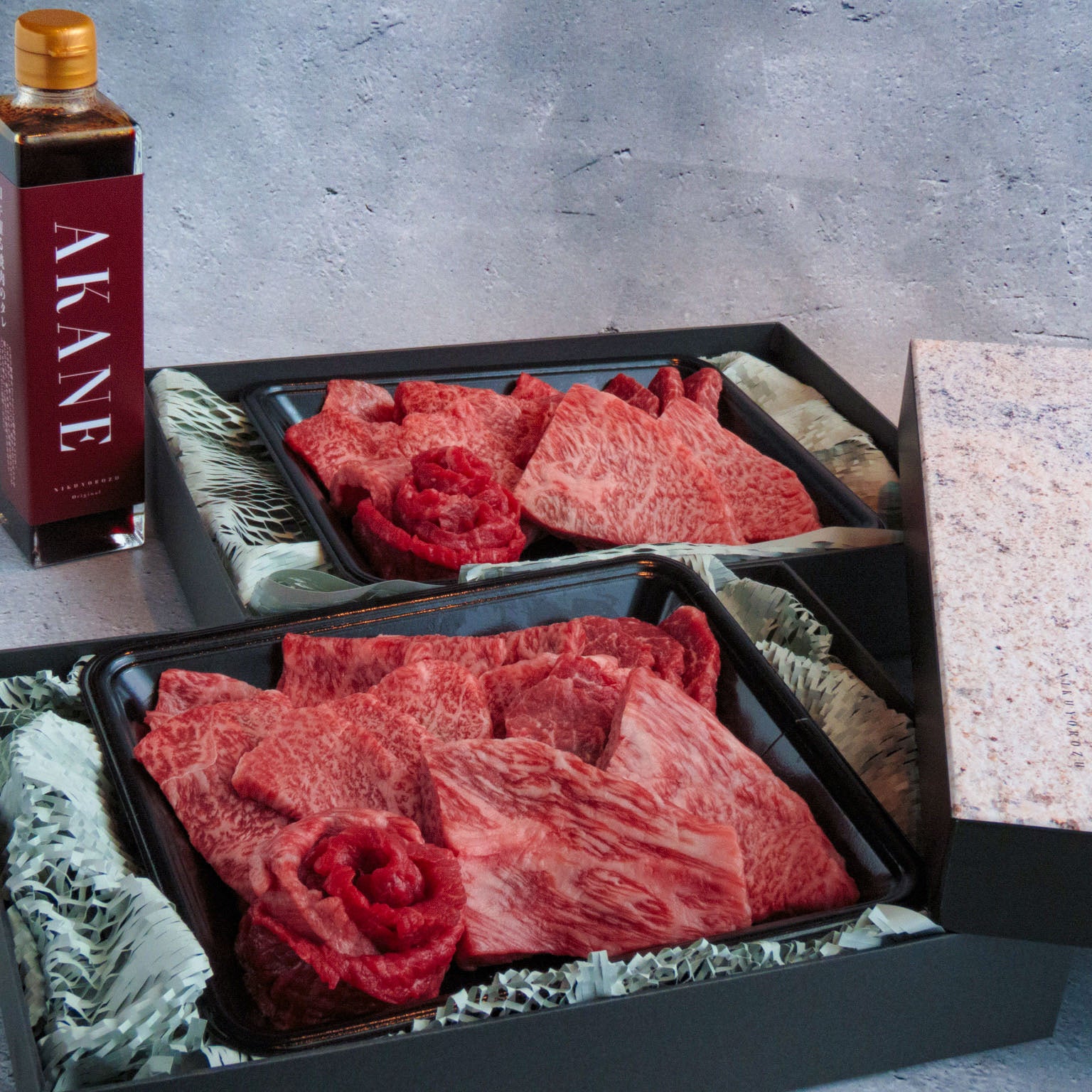 あっさりとして食べ飽きない内もも、肉の味が濃くきめ細やかなサシが入ったクラシタなどの部位を使用。食べ応えのある厚切りステーキカットや定番の焼肉カットなど様々なカットを盛り合わせました。色々な焼き方で和牛の美味しさをお楽しみいただけます。