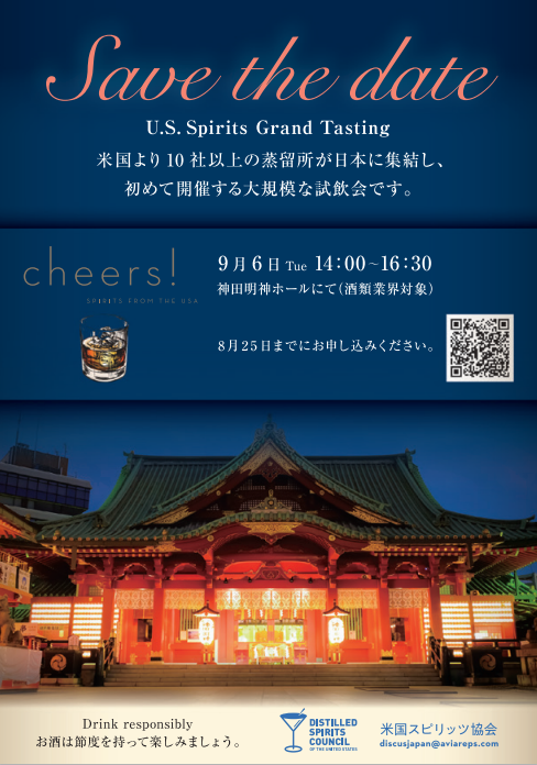 米国スピリッツ協会(DISCUS)は、米国の蒸留酒業界の提唱者です。DISCUSのCheers! Spirits from the U.S.A.キャンペーンは、米国農務省の農業貿易促進(ATP)プログラムの支援を受け、日本を含む主要輸出市場の消費者、バイヤー、輸入業者の間で、米国産蒸留酒の認知度と嗜好性を高めることを目的としています。