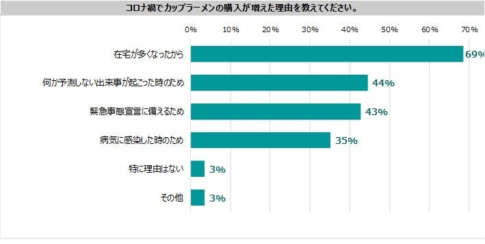 今回の調査で、カップラーメンは老若男女問わず多くの方から愛されていることがわかりました。コロナ禍で在宅、巣ごもりが多くなったことから購入頻度も増えています。何かあった時のためという回答も上位回答に挙がってきていることから備蓄の意識も上がっていることがわかります。昼食を簡単に済ますことができることからも日常的に消費されており、手軽に美味しくいただけるカップラーメンは今後も求められ、なお愛され続けていくものではないでしょうか。