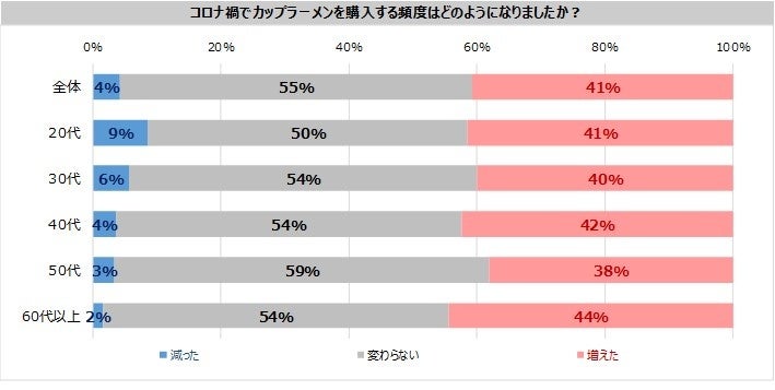 2. コロナ禍で41%が購入増えた。月1回以上の購入率は56%から62%へ。