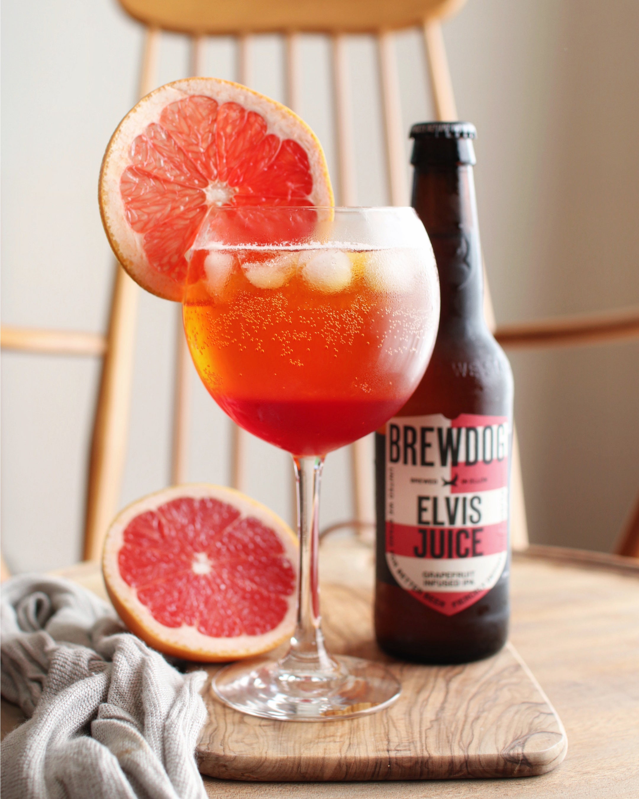 ELVIS JUICE のグレープフルーツのフレーバーを、よりフレッシュなピンクグレープフルーツの爽やかさと苦味を足してよりフルーティーに。ビールが苦手な方でも飲みやすいようにしました。
