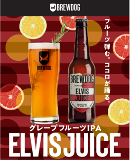 ブリュードッグ・カンパニー・ジャパン株式会社が取り扱う「ブリュードッグ」は、世界中を本当にうまいビールに夢中にさせることをミッションとし、挑戦を続け、自分たちの意志で新しいビール文化を創ることを目指している。今回、フルーティな香りと酸味が特徴の、グレープフルーツIPA「ELVIS JUICE(エルビス・ジュース)」をブランドのファンであるPUNKSたちの声を反映し商品スペックを変更してアルコール度数を6.5%とした。ELVIS JUICEは、特に若い女性層の評価が高く、カジュアルレストランやホームパーティー、BBQといった気の置けない仲間たちと有意義な食事時間を共有するグルーヴィーなオケージョンで楽しんでみてほしい。