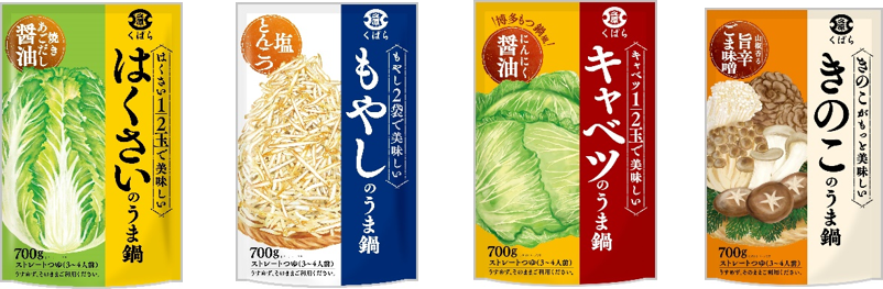 発売以来ご好評をいただいているくばらの「うま鍋」シリーズが、さらに美味しくなりました。「野菜を美味しく食べる鍋」をテーマに、それぞれの野菜の旨みを引き立てる味わいです。