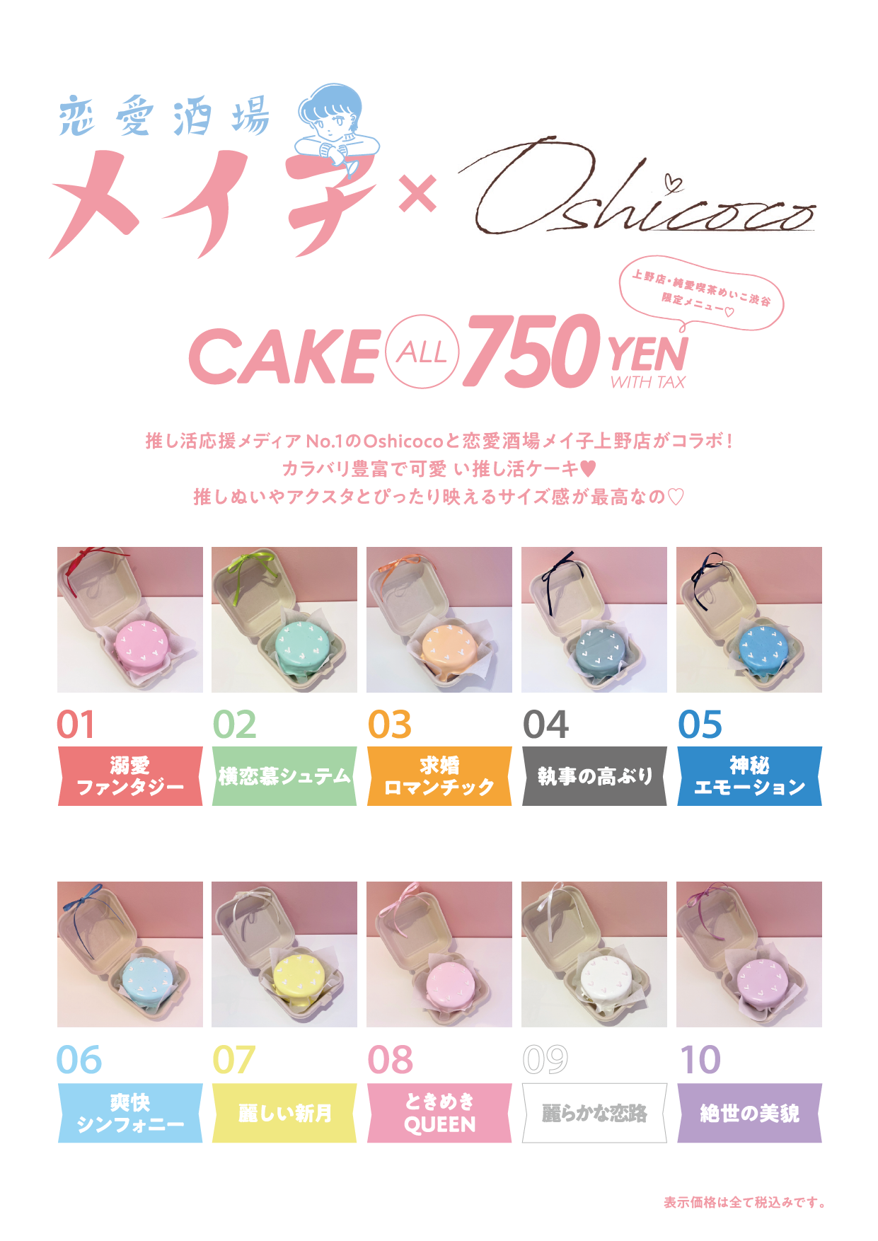 6.5万人フォロワー「推し活応援メディア」と推し活専門オンラインストアを運営する株式会社Oshicoco(本社:東京都渋谷区、代表取締役:多田夏帆)は、『恋愛酒場メイ子 上野店』『純愛喫茶めいこ 渋谷店』と「推し活」をテーマにしたコラボレーションメニューを8月6日(土)より提供し、ご好評いただいております。
