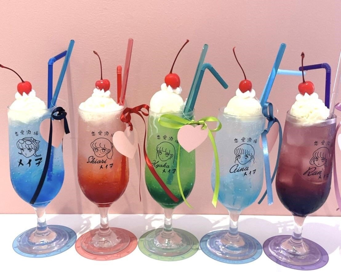 ドリンクだけでなく、コースターやストローの色までメンカラ仕様。ノンアルコールの甘いクリームソーダと、大人向けクリームサワーの2種類をご用意しました。