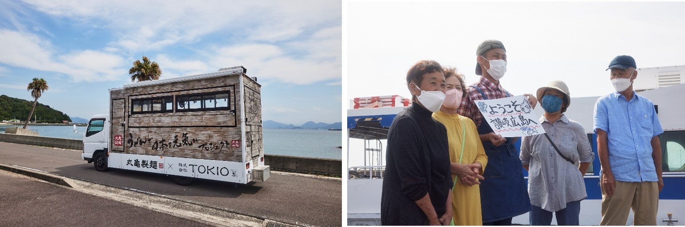 株式会社丸亀製麺(本社:東京都渋谷区、代表取締役社長:山口 寛)と株式会社TOKIO(本社:東京都港区、社長:城島 茂)は、昨年4月に締結した「共創型パートナーシップ」における共創プロジェクトの一環である「うどんで日本に元気を届けるキッチンカー」プロジェクトにおいて、8月30日(火)に香川県丸亀市の讃岐広島へ訪問し、幻の唐辛子とも呼ばれる「香川本鷹」と地元の食材を使用した島民の想い溢れる「想い出の一杯」を振る舞い、笑顔を届けました。