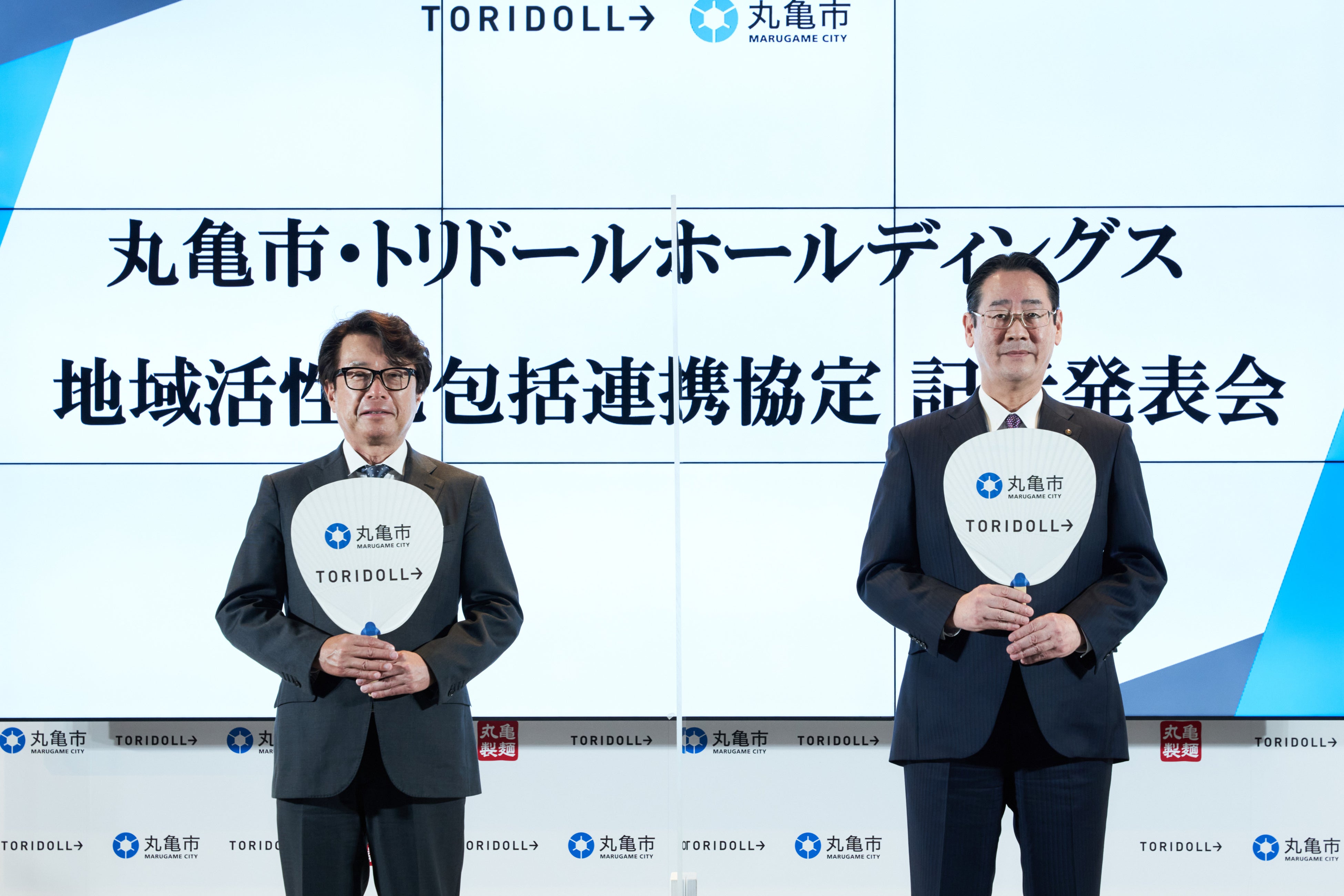 昔ながらの伝統文化やいいものを残しながら地方創生の実現を目指す丸亀市と、讃岐うどんの原風景を再現したいという想いから“手づくり・できたて”にこだわる丸亀製麺を運営する株式会社トリドールホールディングスは、互いの大切な想いに共感、共鳴し、この春「地域活性化包括連携協定」を締結いたしました。