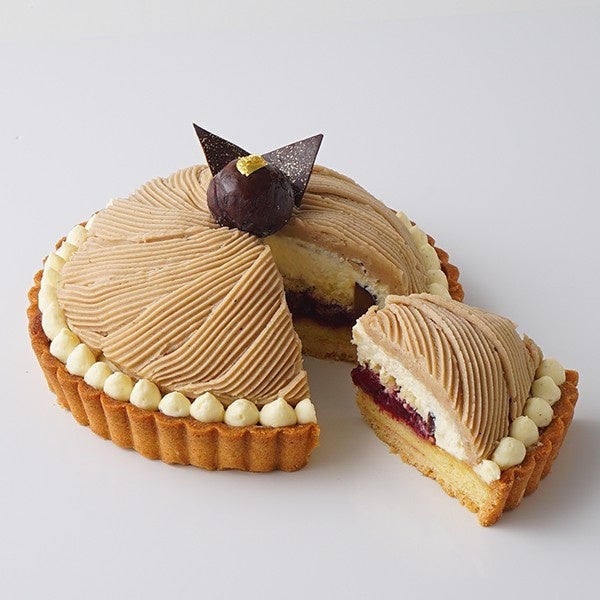 リッチな味わいのフランス産栗ペーストと上品な甘みの愛媛県産和栗ペーストを絶妙にブレンドしたマロンクリームのモンブラン。丹沢種の渋皮栗とほんのりバラの香るベリーのジュレをしのばせました。エシレバターを使用してしっとり焼き上げたタルトとお楽しみください。