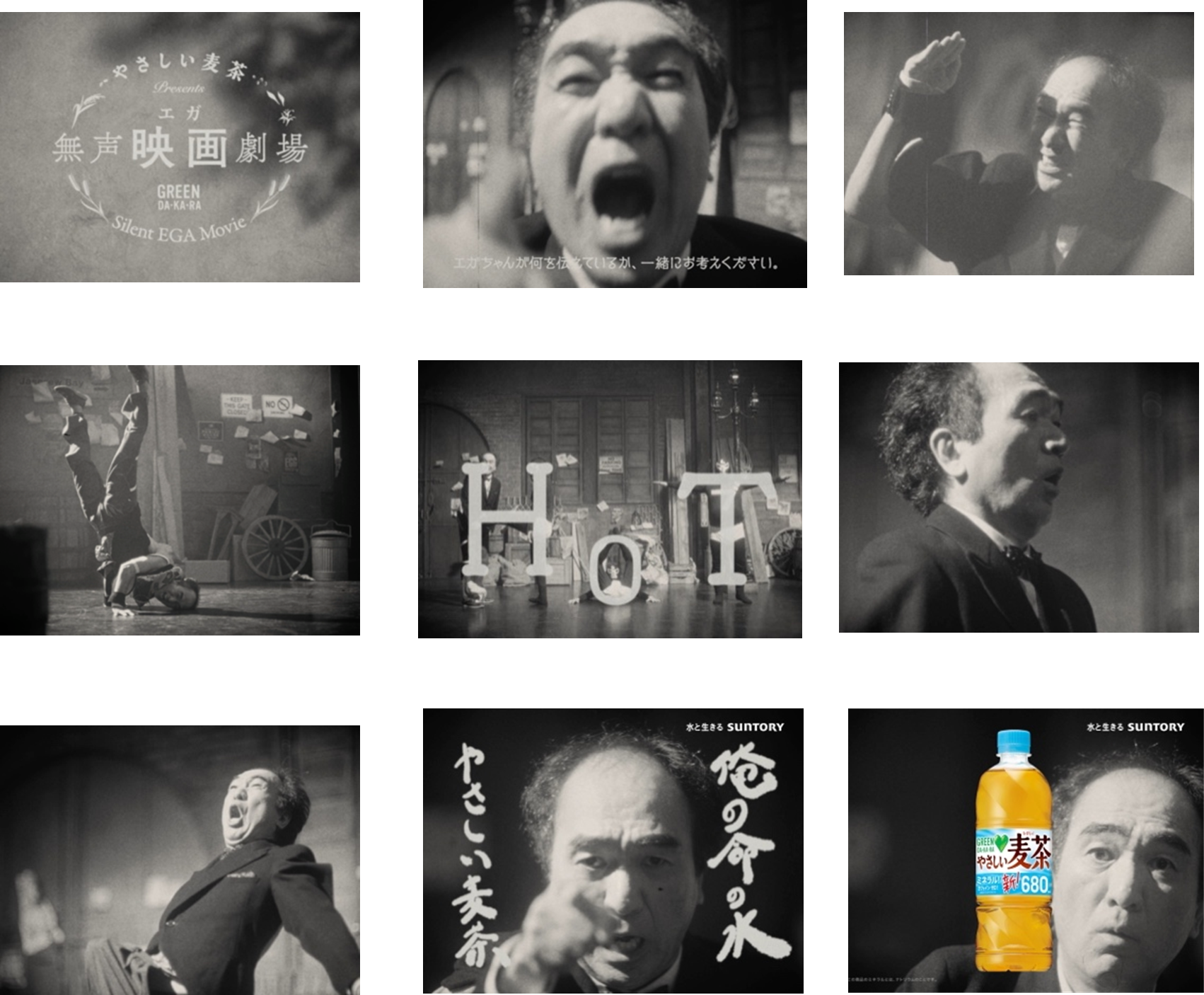 本WEB動画では、江頭2:50さんが無声エガ(映画)に初挑戦しています。冒頭からカメラに向かって必死に叫ぶ江頭2:50さんですが、本編は基本的に無声映画に倣った“無声”の映像となります。得意の“叫び”を封じられた状況でも、パントマイムや人文字など江頭2:50さんならではの表現方法で水分補給の大切さを伝えますが、最後は叫びが解禁され、「俺の命の水、やさしい麦茶!」と麦茶への愛を込めた熱いメッセージを送っています。
