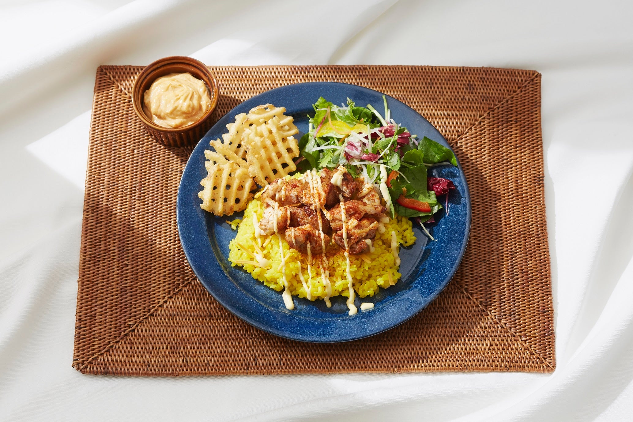 ※写真は焼いたペリペリチキンをターメリックライスにのせて上からペリペリマヨネーズで追いペリ