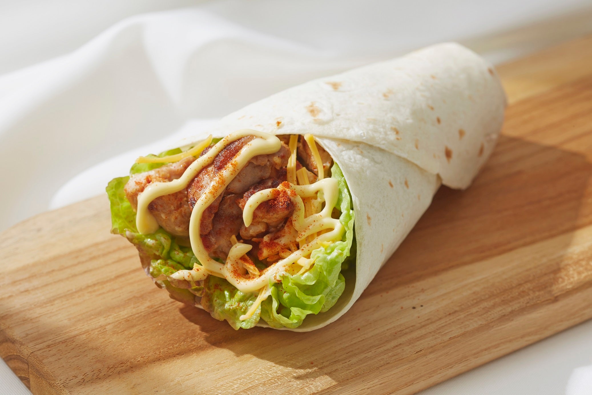 ※写真はトルティーヤで刻んだペリペリチキンとサラダを包んだブリトー
