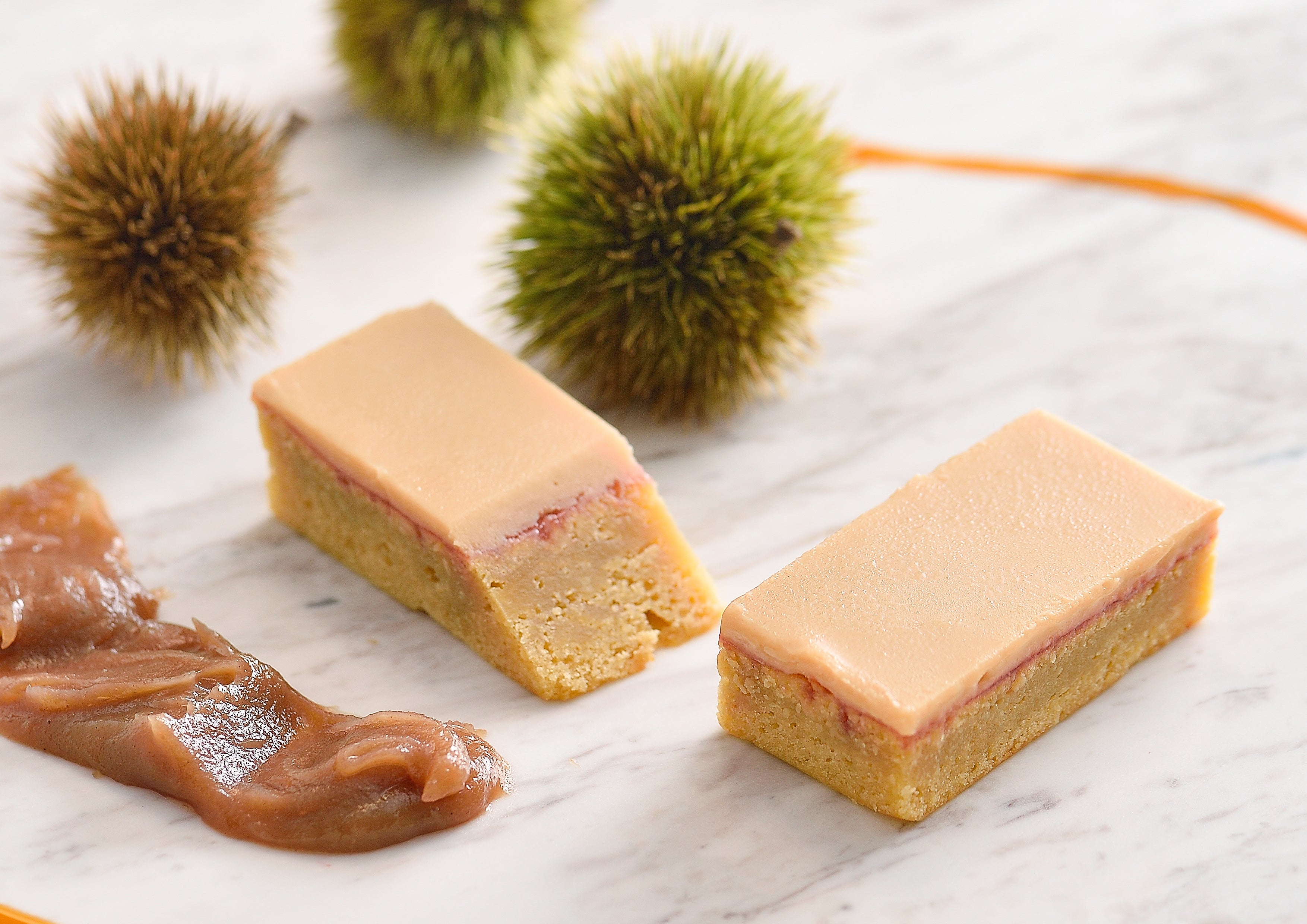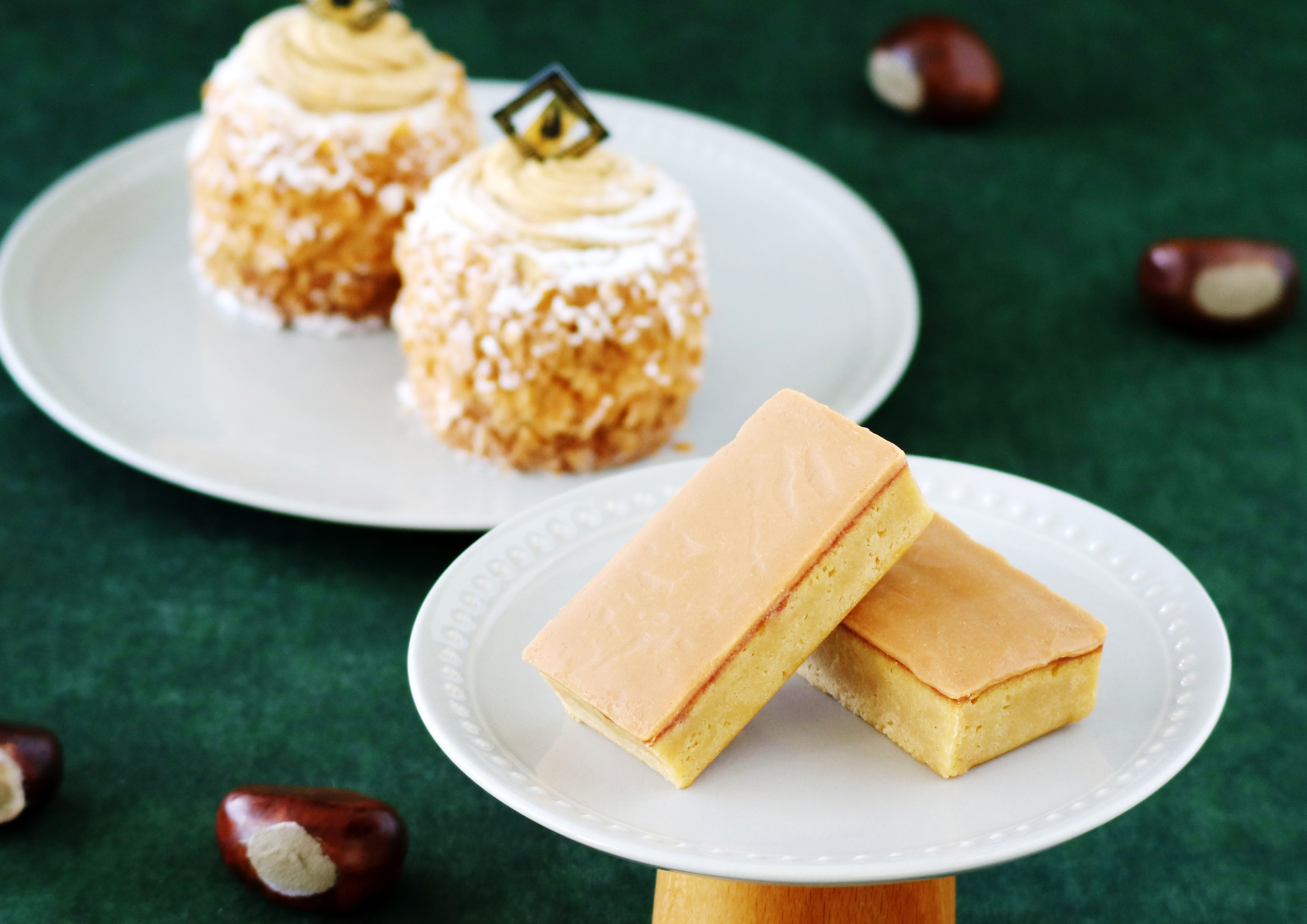 当店人気のプチケーキ「モンブラン」が「横濱煉瓦」の新フレーバーとして初登場します。 表面のソース部分は、栗風味のなめらかなホワイトチョコとじっくり炊き込んだ自慢のキャラメルソースを合わせ、霧笛楼らしい「キャラメルモンブラン風味」を演出。