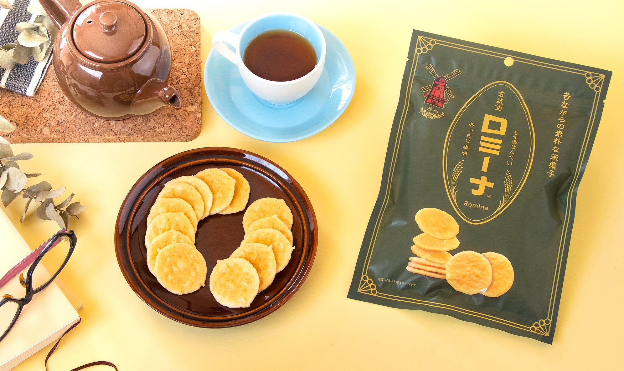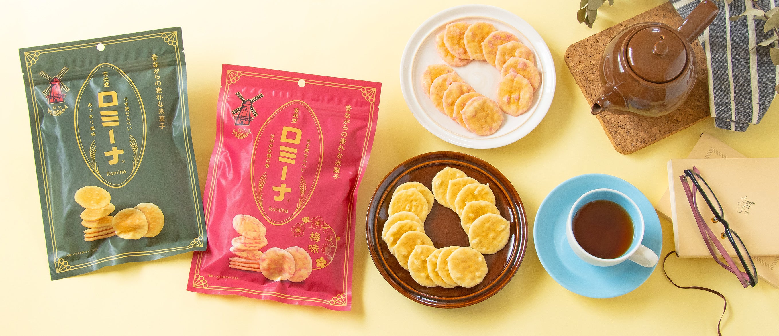 かみしめた時に、ふんわりうるち米の豊かな風味がするように造るため、あえて、昔ながらの工程を守り、長年にわたって製造されている「ロミーナ」。兵庫県では知らぬ人がいないくらい、多くの人に愛されてきた「ロミーナ」を、これまで以上に、たくさんの方に手にとっていただきたい。げんぶ堂と当社の思いが一致したことで、本商品は生まれました。装い新たに生まれた「ロミーナ」を是非、一度お楽しみください。
