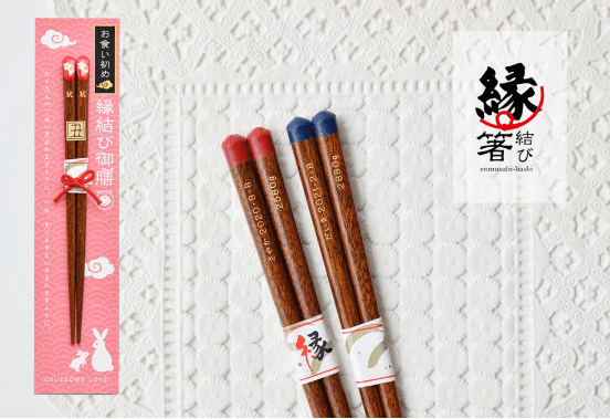 「お食い初め 出雲縁結び御膳」には、3種類の御膳があり、いずれの御膳にも「出雲の夫婦愛和の神・塩冶神社」でお祓いした「歯固め石」と出雲大社の表参道に店舗を構える「ひらの屋」の「縁結び箸」をお付けしております。