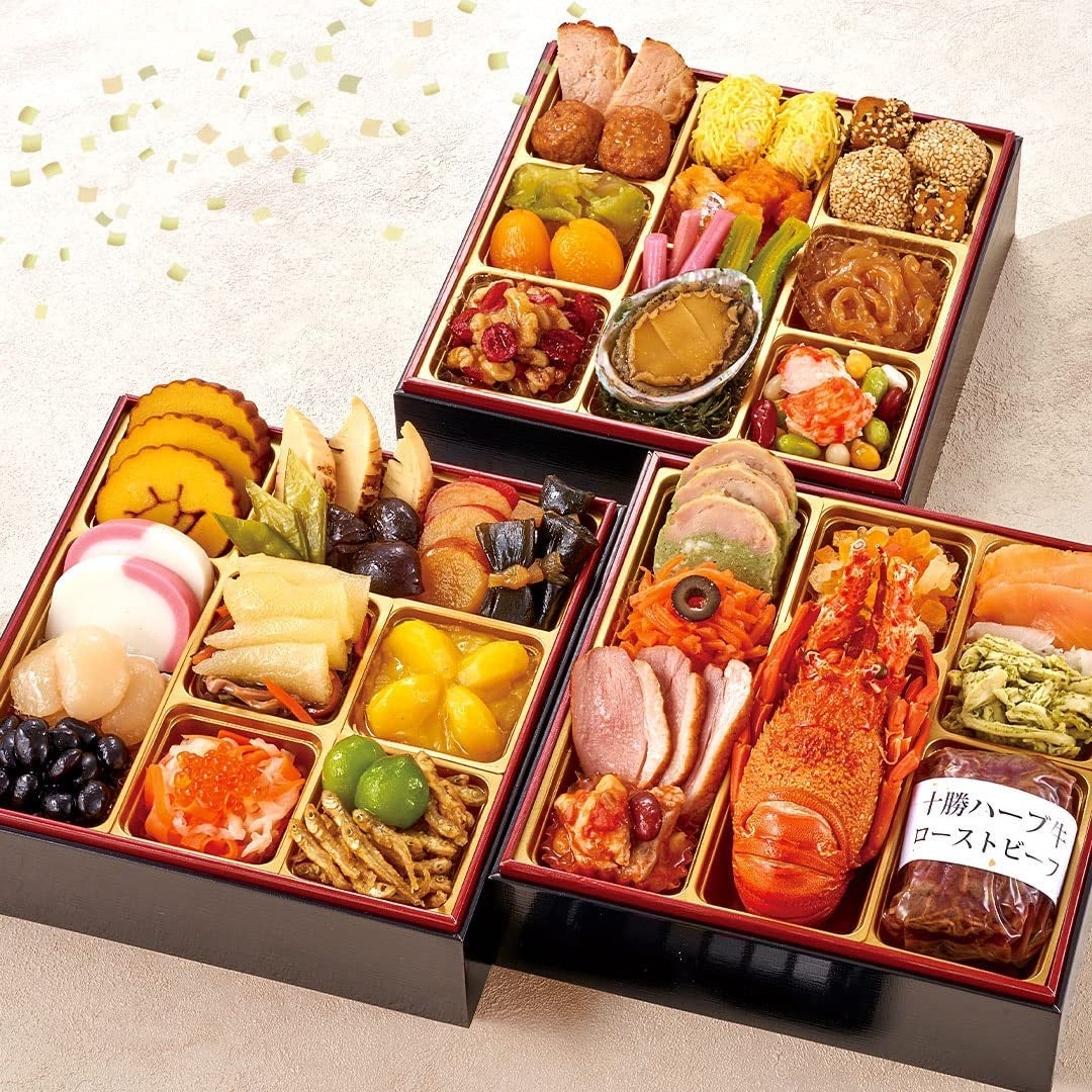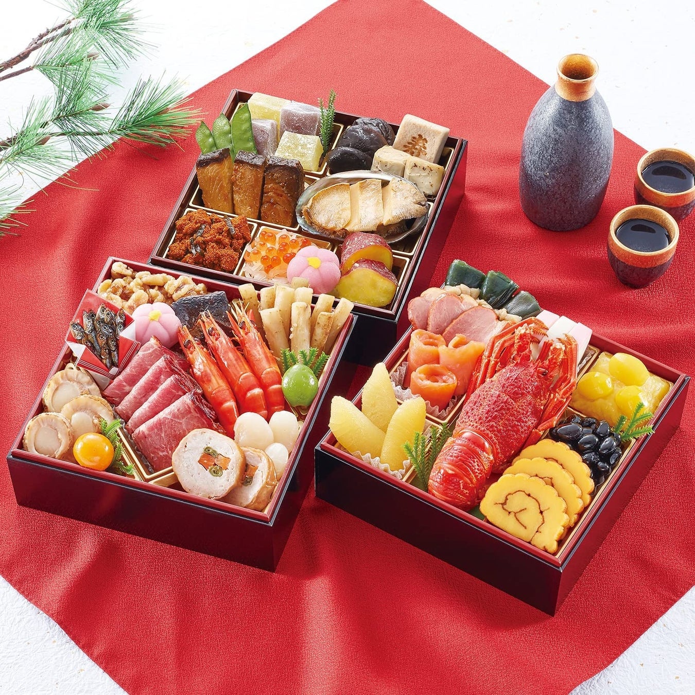 初めての通販おせちにぴったりな驚きのお値打ち価格で、新春の家族の集いと語らいに華を添える気軽に楽しめる本格おせちです。物価高騰の中、企業努力で価格は昨年から据え置きとなっており、あわび、ロブスター、ローストビーフなど高級食材も贅沢に入っています。