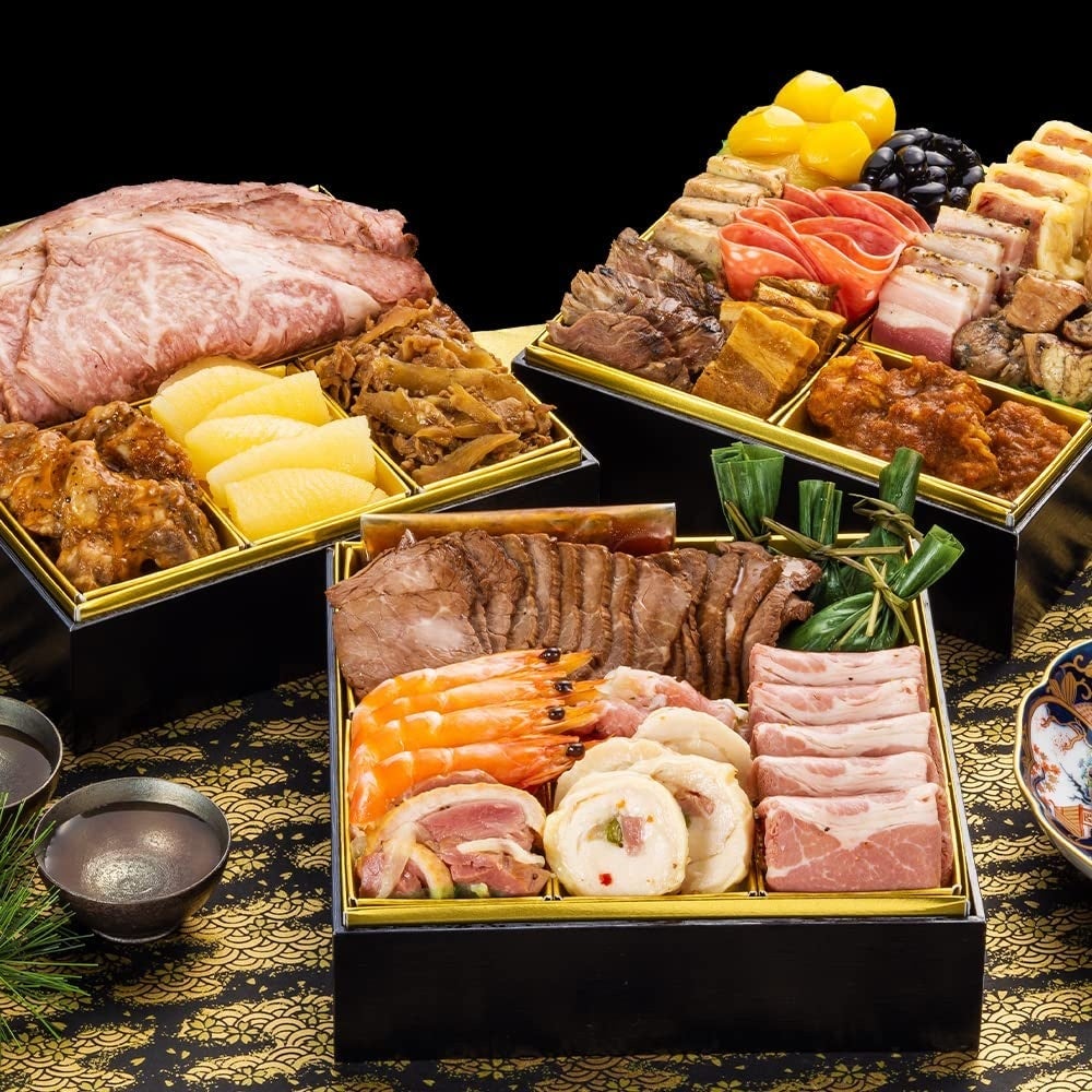 牛肉を主に使った食材を詰め込んだ豪華なおせちです。