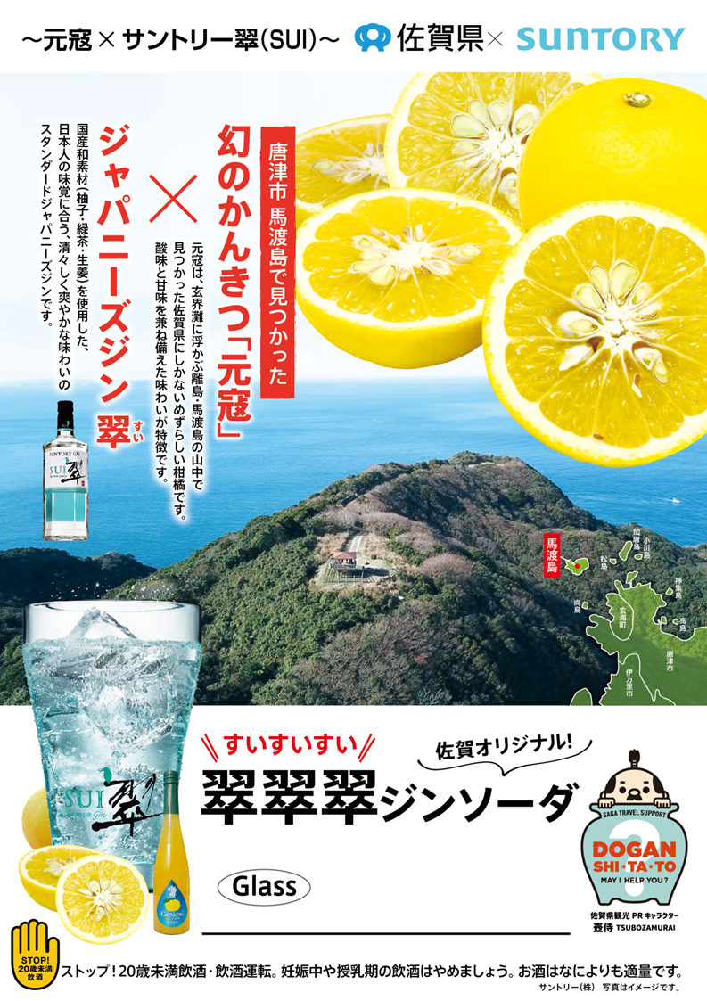 話題のジャパニーズジン「翠」と自治体初コラボ!佐賀原産の幻のかんきつ「元寇」と組み合わせた「翠翠翠ジンソーダ」を佐賀市内14店舗で展開!