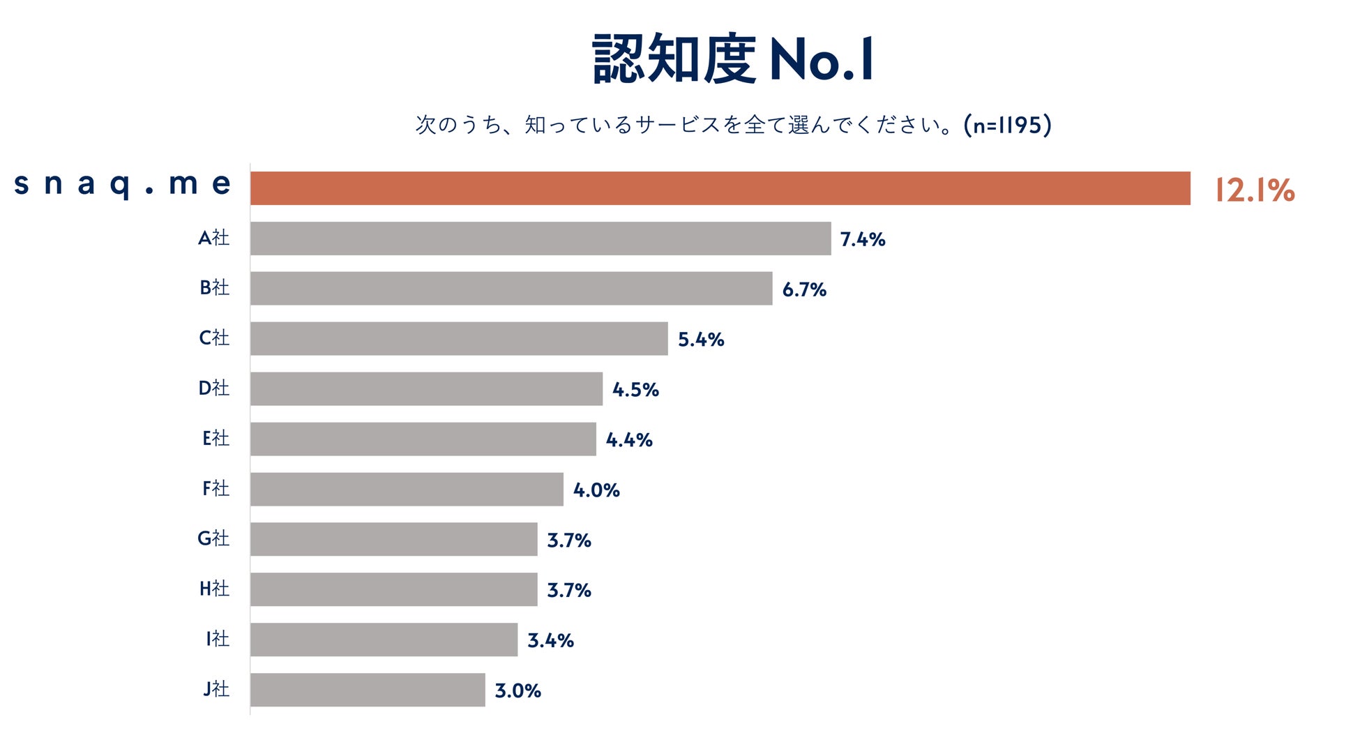 snaq.meが「おやつのサブスクリプションサービス(11社※)」の中で、認知度、利用経験、利用意向の全てで1位を獲得しました。