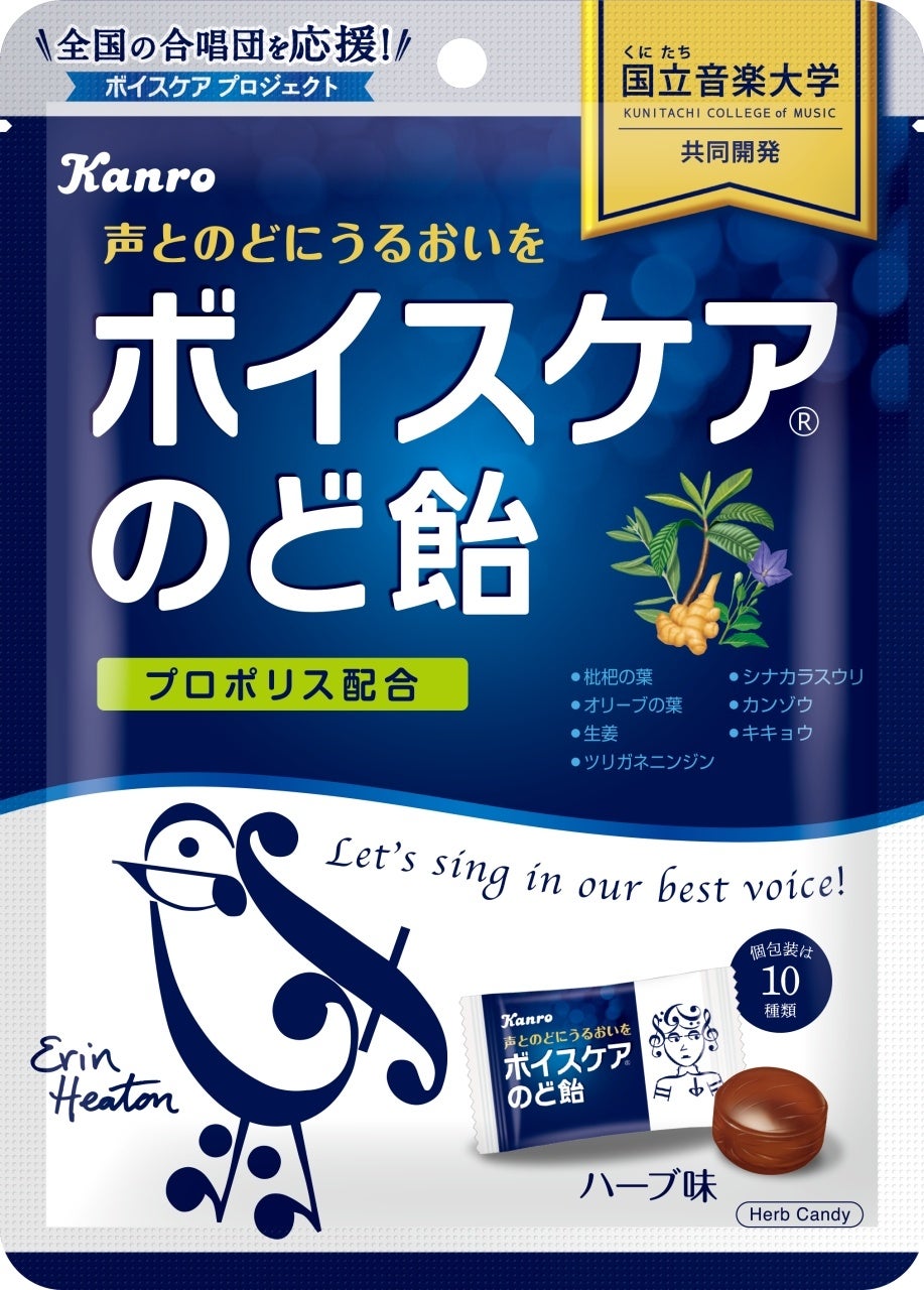 「ボイスケアのど飴」は、国立音楽大学声楽科の教授監修のもと学生の声を聞きながら、試作を繰り返してつくった「声とのどを大切にする人」のためののど飴です。従来ののど飴にはなかった「声をケアする」という価値を持つ商品として、日常的に「声」と「のど」を使う方の強い味方となっています。
