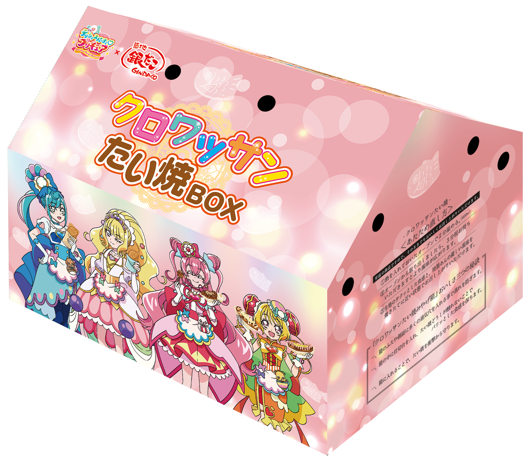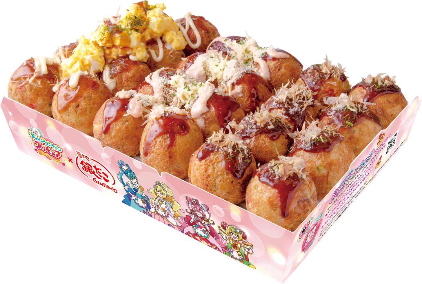 今回のコラボ商品は、当コラボ限定の描き下ろしで、たこ焼やたい焼を楽しむデリシャスパーティ♡プリキュアの姿がデザインされたお持ち帰り専用の特別パックです。テーブルを華やかに彩り、“ぜったいうまい‼たこ焼” と “クロワッサンたい焼” で 「笑顔いっぱいの楽しい食卓」 をより一層盛り上げます!