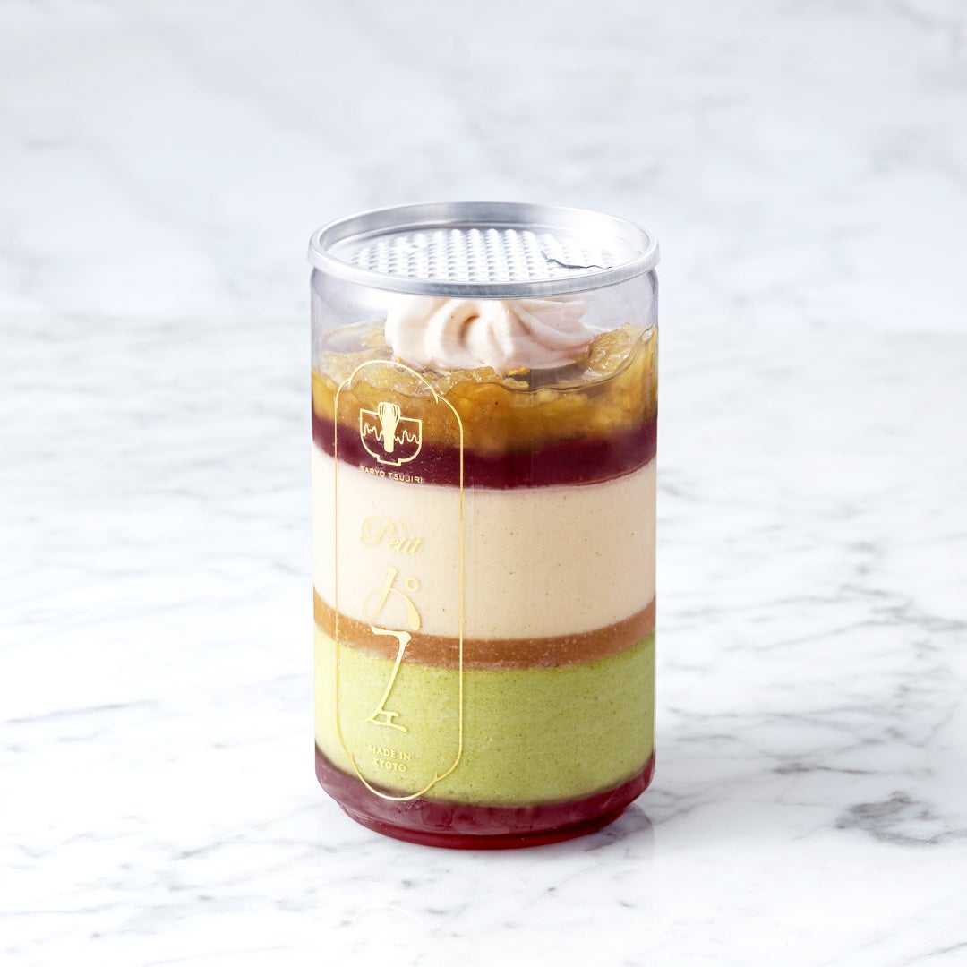 層の数だけ、抹茶の味わいに変化が訪れる「Petitパフェ抹茶」。 京都水尾の実生栽培柚子で仕上げたゼリーと、茶寮都路里のホイップ、小豆が重なり合い生まれる和洋の垣根を超えた爽やかな甘味をお楽しみいただけます。そして、祇園辻利厳選抹茶を使用した濃厚抹茶ジュレと相性の良いミルキーなムースによって、最後まで香り引き立つスイートな仕上がりに。