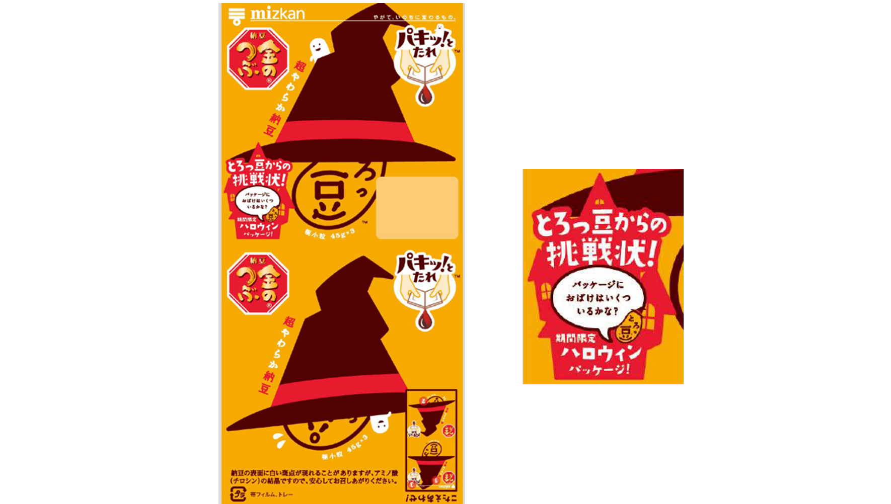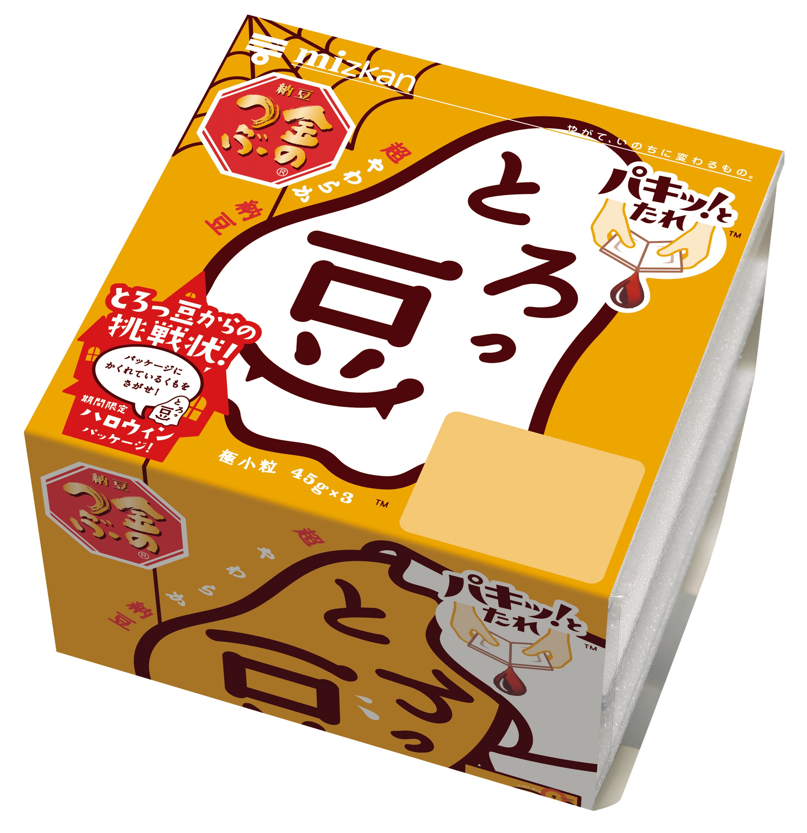 「金のつぶ® パキッ!とたれ™ とろっ豆™」をお買い上げ、お召し上がりいただいている皆様、いつもありがとうございます。今回は「とろっ豆」からハロウィン限定の楽しいパッケージが登場します。