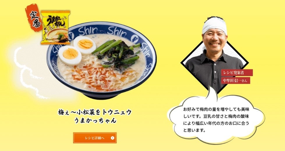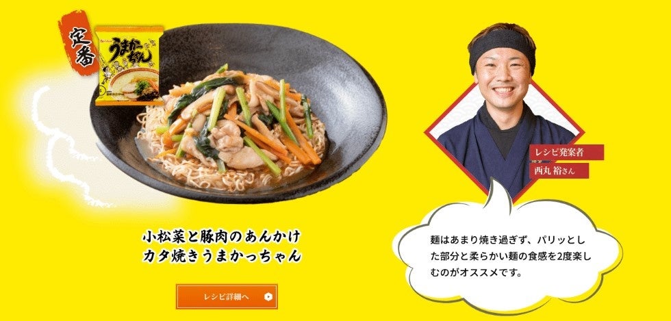 普段から「うまかっちゃん」を召し上がっていただいているヘビーユーザーの方々へお話を伺ったところ、「アレンジレシピを知りたい」「いろいろな食べ方でうまかっちゃんを楽しみたい」という声を多くいただきました。まず、第一弾として、「うまかっちゃん」の新CM公開にあわせ、ブランドサイトにアレンジレシピを拡充させるなどコンテンツを更新してまいります。