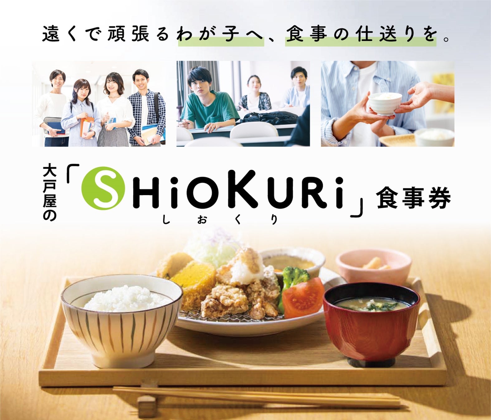 「大戸屋だいすきチーム」の学生の想いがこもった「SHIOKURI食事券」は9月2日から販売開始いたします。