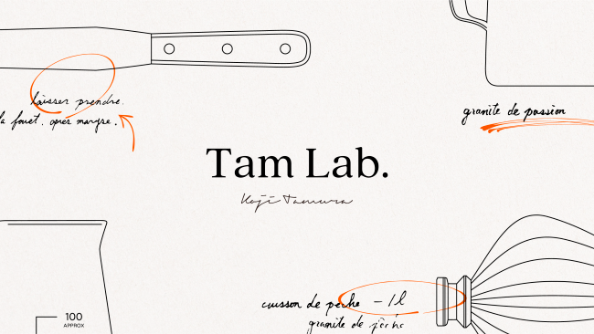 「Tam Lab.」は、田村の感性と確かな技術、そしてひらめきから“今までにないおいしさ”を探求するためにスタートする新プロジェクトです。