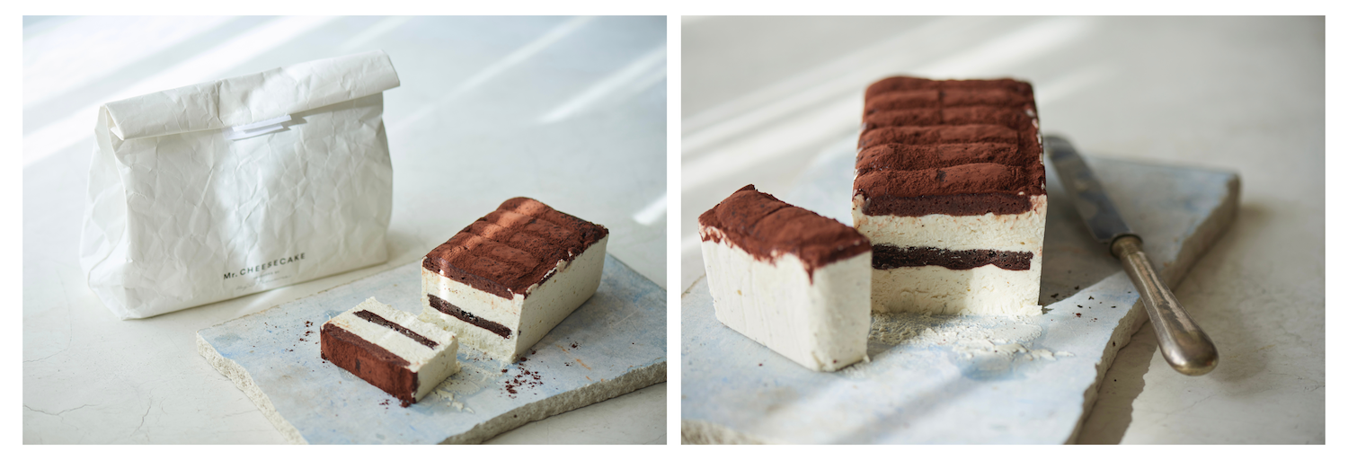 お酒も小麦粉も使用していない、儚い口どけのティラミス。温度によって変化する味わいと香りが楽しめます。Mr. CHEESECAKEのオリジナル保冷バッグに入れてお届けします。