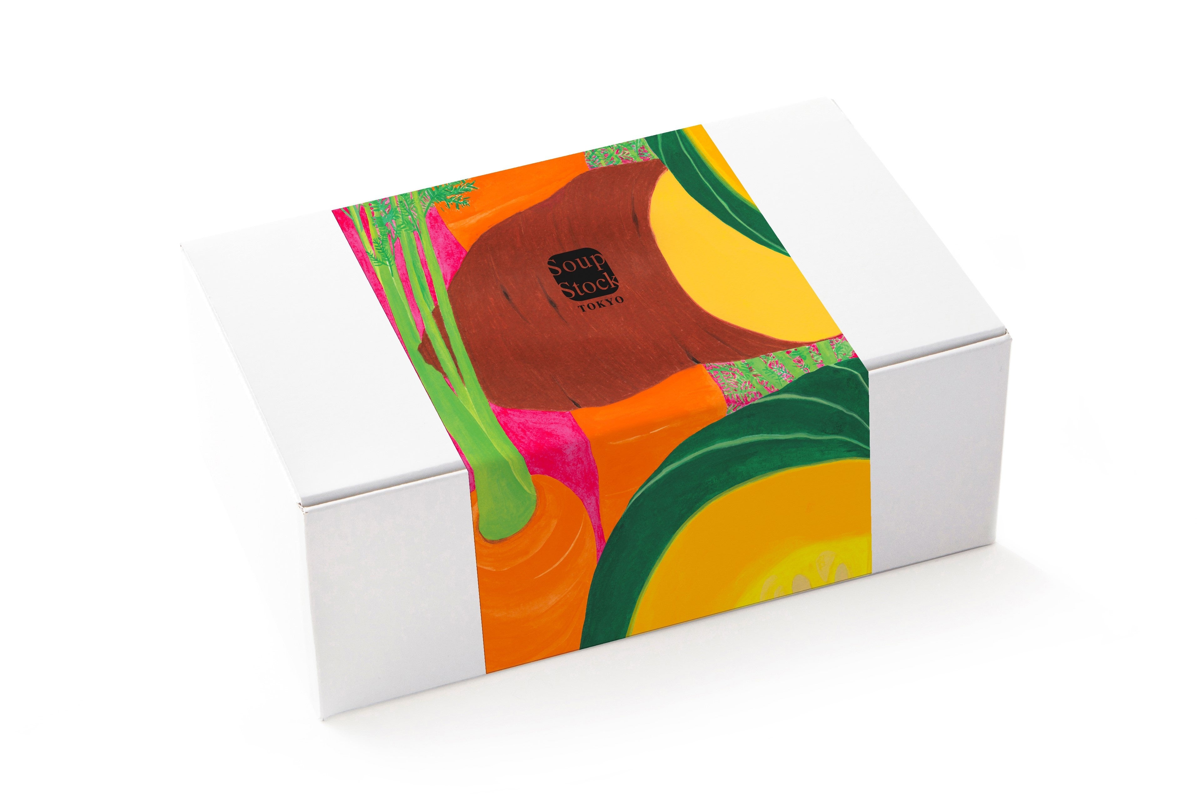 さつまいも、にんじん、かぼちゃなど、柔らかいタッチで大きく描かれた野菜は、スープストックトーキョーのスープにも使われているおなじみの野菜。野菜の持つ力強さを感じる、元気になれそうな、そしてどこかあたたかいデザインです。秋限定の掛け紙をかけて、見た目からも秋らしさを感じていただけたらうれしく思います。