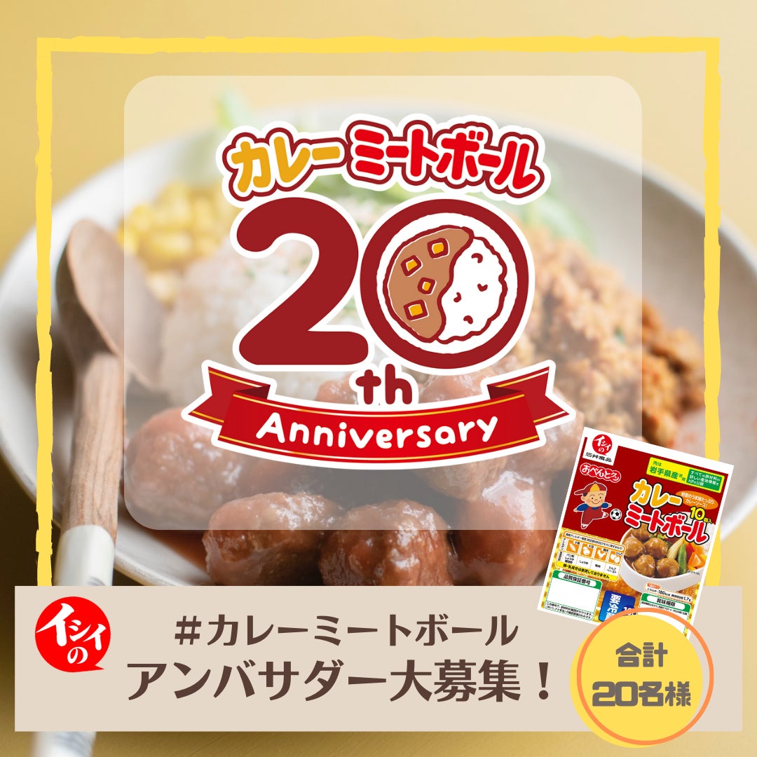 今年で20周年を迎えるカレーミートボール。もう大人なのに…なかなか知られていません。そんな #カレーミートボール 、ぜひおいしく食べて、広めてくれる仲間を20名大募集いたします。「食べることが好きな方」「ごはんをつくることが、苦手な方」「ごはんづくりが、もっと楽になればよいのにと思っている方」「一緒にイシイの商品の魅力を発信してくださる方」「イシイの商品が大好き!気になっていた!という方」、ぜひカレーミートボールを応援をお願いいたします。