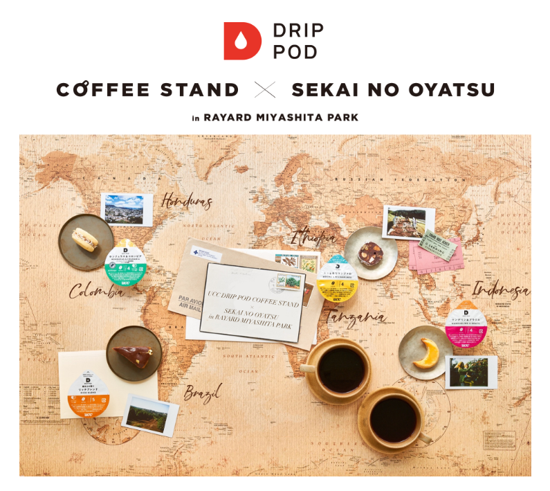 UCC上島珈琲株式会社(本社/兵庫県神戸市、資本金/10億円、社長/朝田文彦、以下UCC)が提供する、コーヒー豆本来の特徴を引き出した「最高の一杯」をいつでもボタンひとつで味わえるカプセル式ドリップコーヒーシステム「ドリップポッド」は、渋谷・宮下公園にある商業施設「RAYARD MIYASHITA PARK」にて、9月23日(祝・金)から10月2日(日)までの10日間、ドリップポッド初の期間限定ショップとなる「UCC DRIP POD COFFEE STAND×SEKAI NO OYATSU in RAYARD MIYASHITA PARK」を開催します。