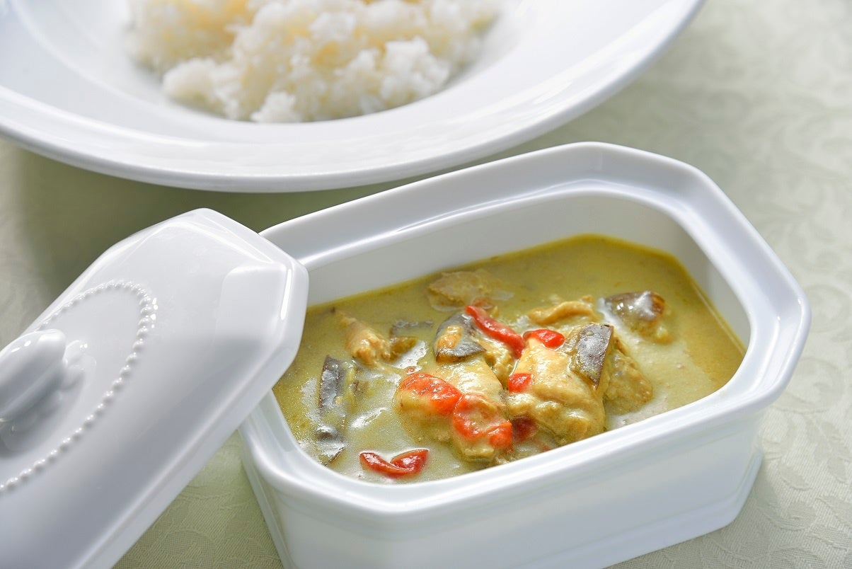 平成に入り、庭園を望むホテル内のルームサービスやダイニングで提供されるようになったタイ式のチキンカレー。スパイスの心地よい刺激とココナッツミルクや野菜で煮込むことで生まれるコクと旨味、そして広がる香りまで作りこんだレシピで、やや辛口の癖になる味わいです。レトルトカレーとしては2011年よりショップにて取扱いしておりましたが、椿山荘の開業70周年を記念して、約9年ぶりにパッケージも新たに復活販売いたします。