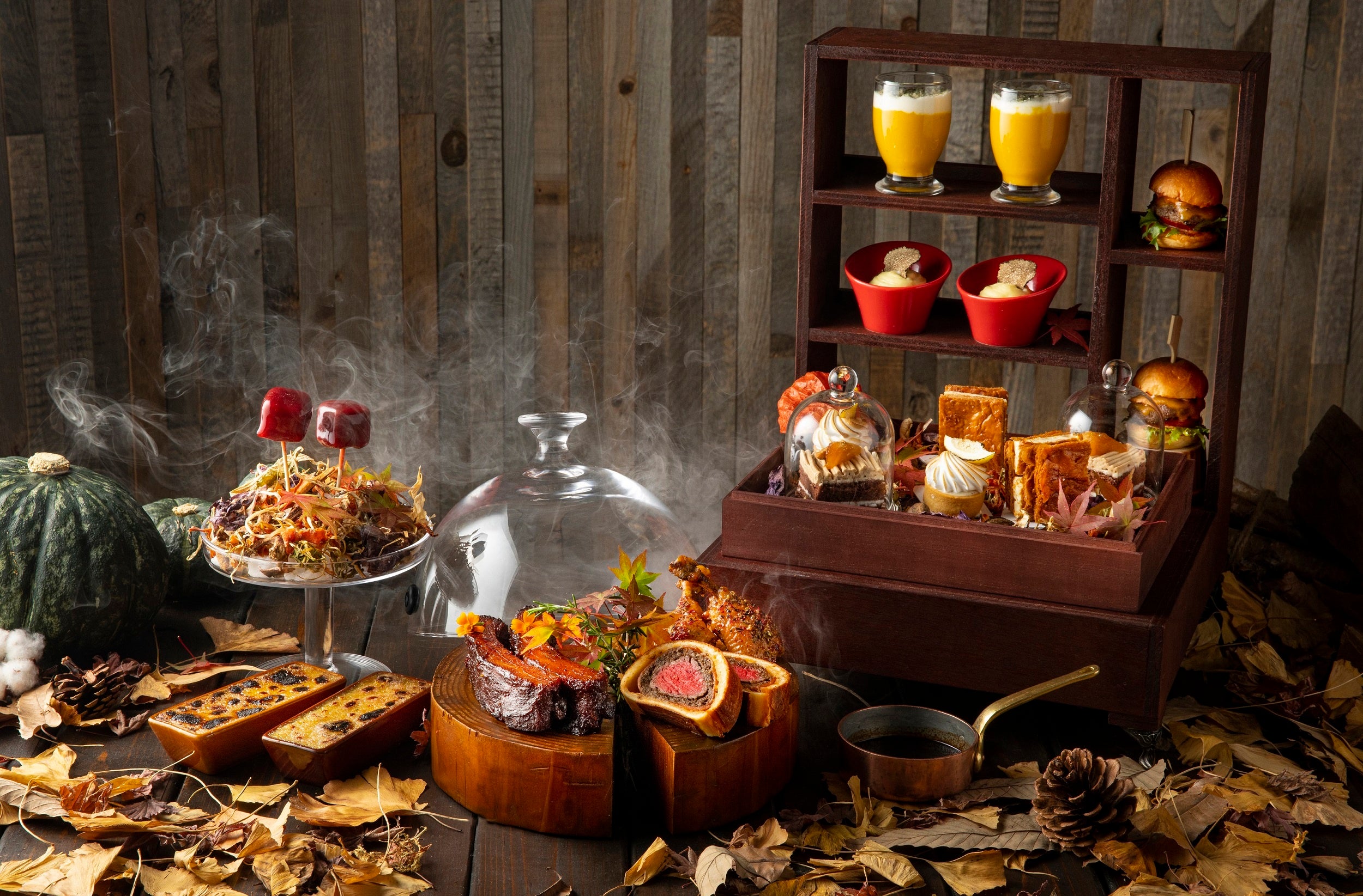 土の香りや落ち葉の香りなど、大地のアロマに包まれながら味わう収穫の秋の美味は、メトロポリタングリル料理長 フィナリー・セメスが炎や煙を巧みに用いた手法でご用意する4種類の肉料理、「パンプキンスープ」や「トリュフマッシュポテト」など5種類のサイドディッシュ、「モンブラン」や「スイートポテト」など秋の人気スイーツ4種類がセットになり、木の温もりを感じさせる特製スタンドでご提供します。ドリンクはコーヒー、紅茶に加え、「バタースコッチアイスラテ」や「ホワイトグレープアイスティー」などをお楽しみいただけます。