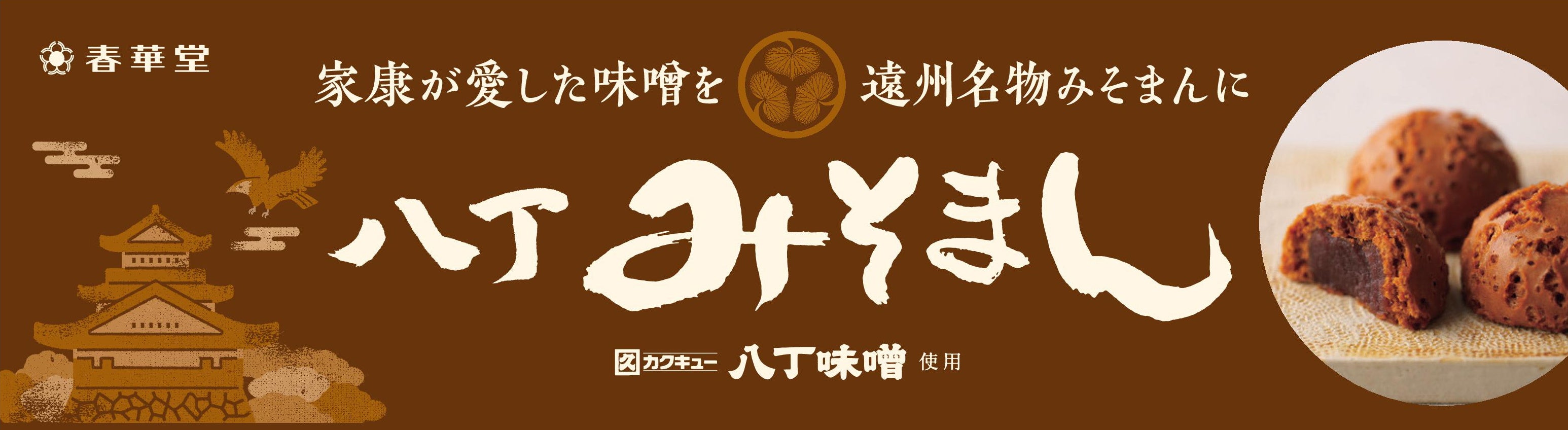 有限会社春華堂(本社:静岡県浜松市、代表取締役社長:山崎貴裕)は、徳川家康公を主人公とした2023年の歴史ドラマの放送が決定したことを受けて「徳川家康公ゆかりの地」の機運を盛り上げていきたいとして、期間限定デザインの「八丁みそまん」を2022年9月1日から新発売いたします。みそまんは家康公ゆかりの地、遠州地域にに古くから伝わる郷土菓子です。皮に江戸時代から同じ製法で天然醸造される、家康公誕生の地である岡崎のカクキューの八丁味噌を練りこみました。職人がじっくりと炊き上げた、旨味ゆたかなこし餡も自慢です。
