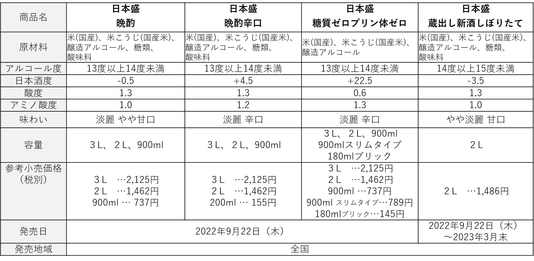 日本盛株式会社(本社:兵庫県西宮市、代表取締役社長:森本 太郎)は、2022年9月22日(木)からコロナ禍で需要が増えた「家飲みニーズ」に合わせ、より店頭でお客様が分かりやすい商品パッケージや酒質への変更を行います。それに伴い、下記の通り商品リニューアル及び期間限定商品を発売致します。