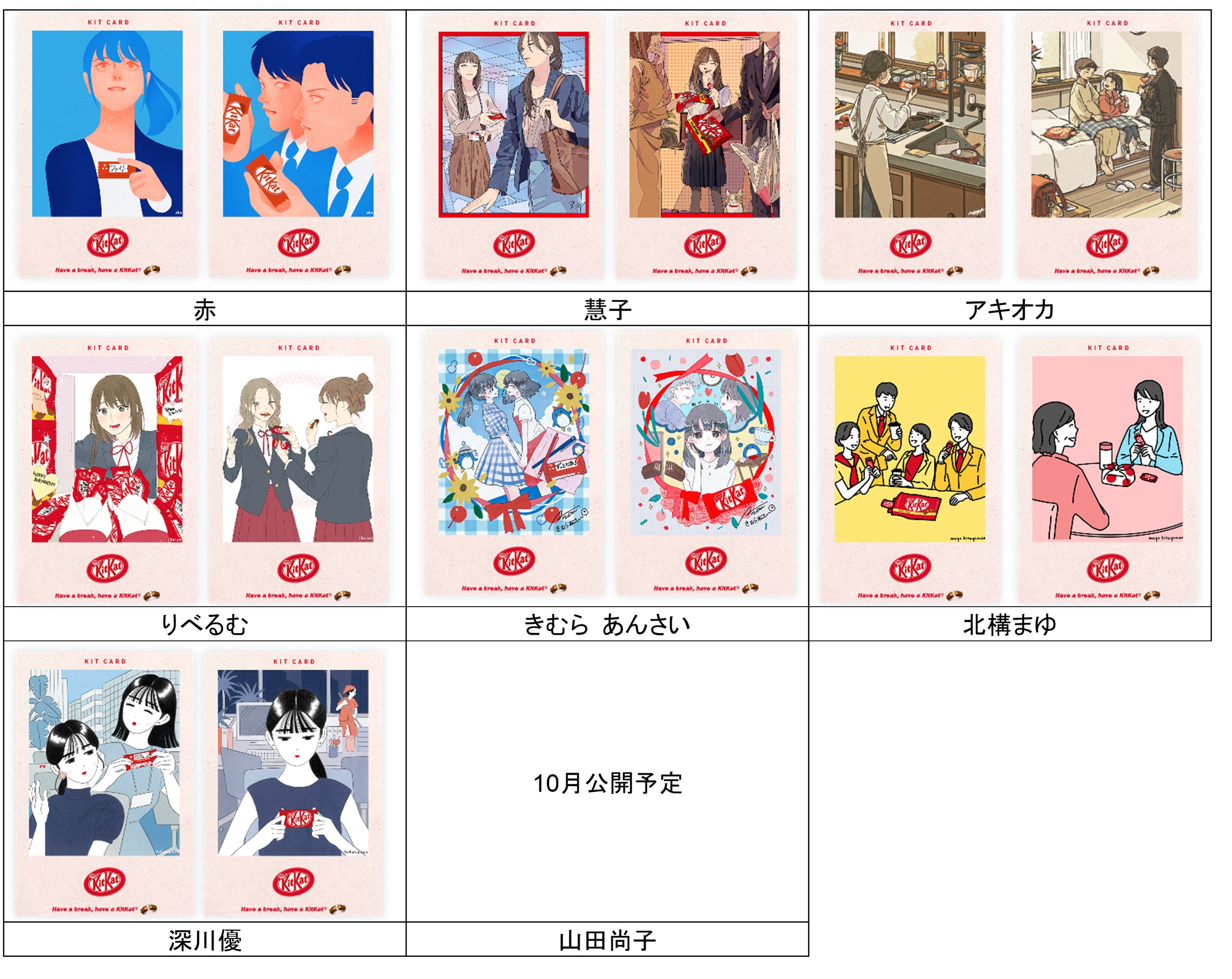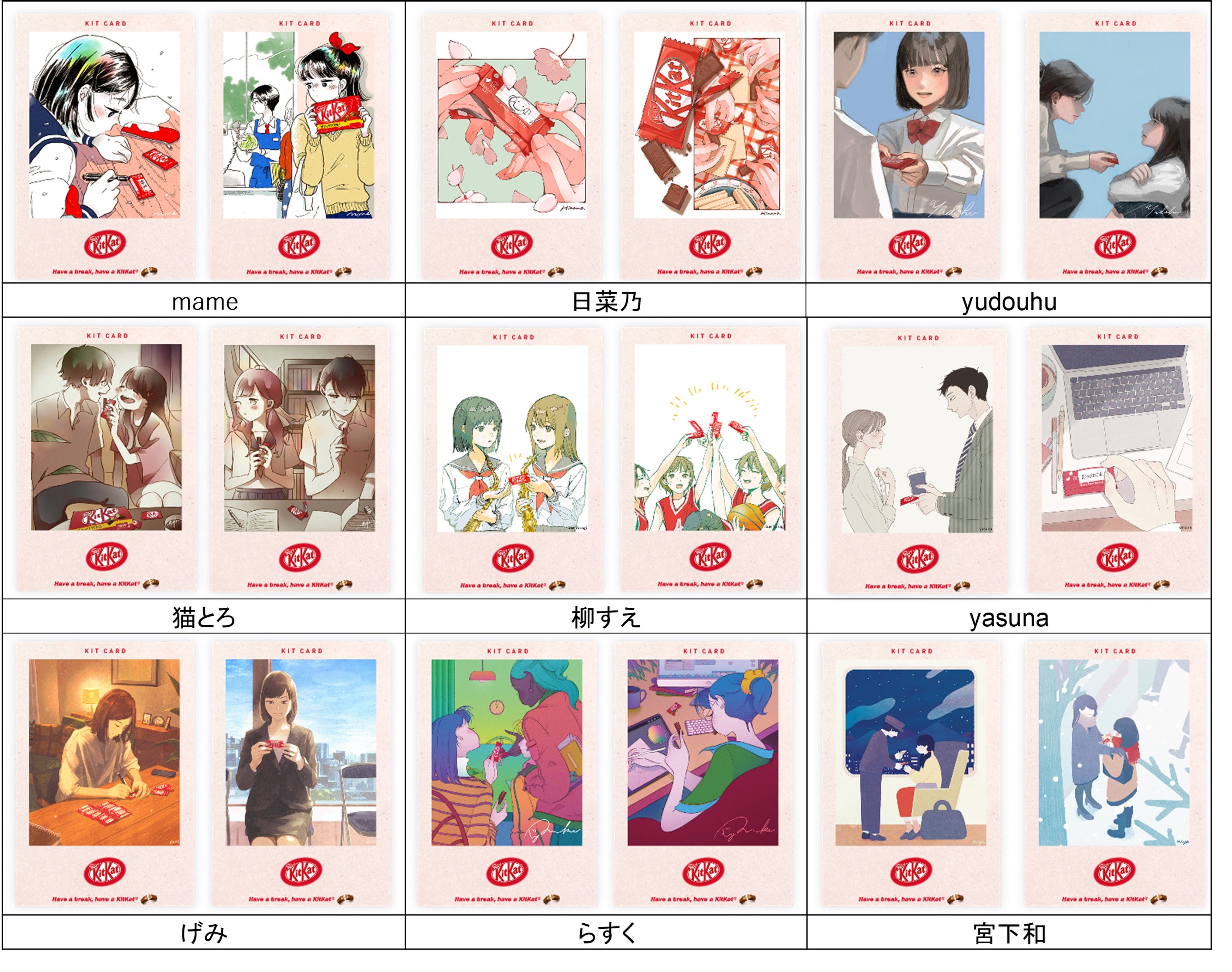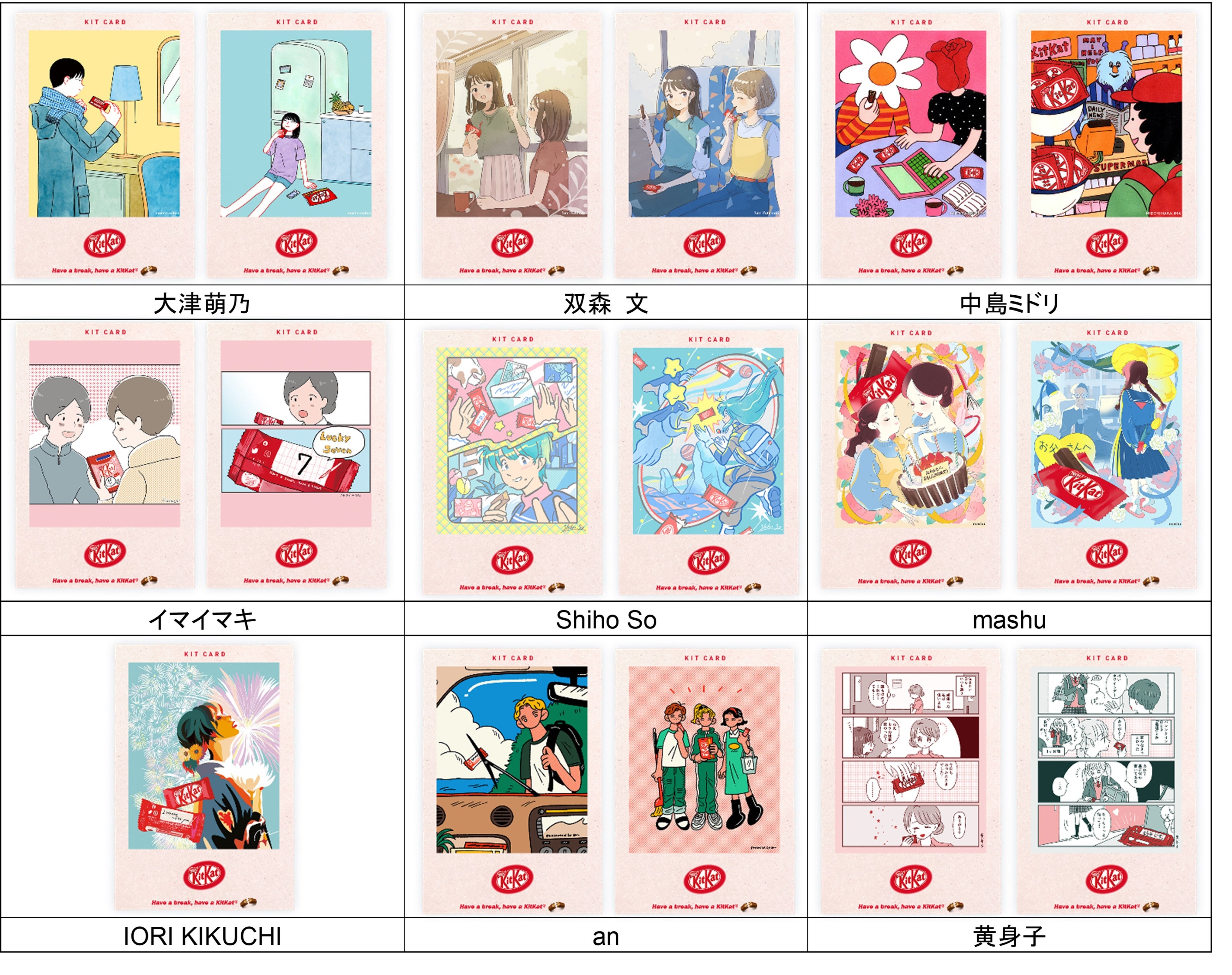 ■「キットカード」全50種及び参加イラストレーター(敬称略)