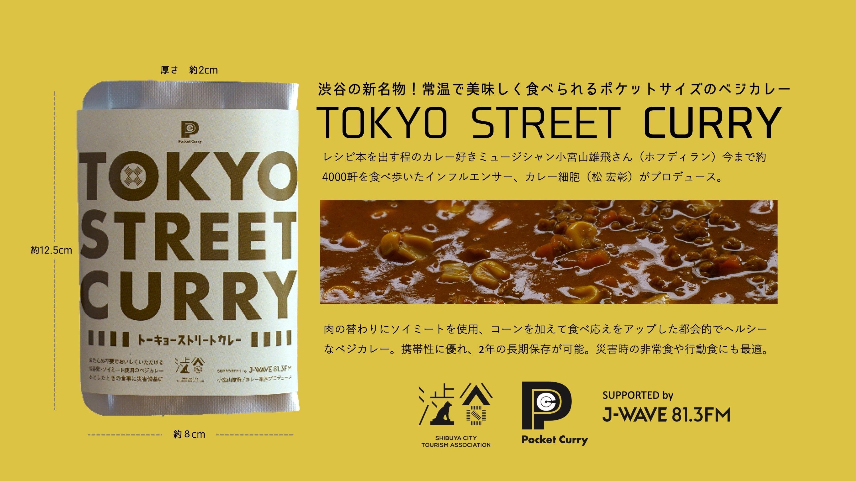一般財団法人渋谷区観光協会(代表理事:金山淳吾 所在地:東京都渋谷区)、ポケットカレー株式会社(代表:松 宏彰 所在地:東京都目黒区)、ラジオ局J-WAVE(81.3FM)は、この度、3者が共同で取り組む、渋谷区観光協会公認 “TOKYO STREET CURRY” の完成と共に、9月3日(土)・4日(日)に開催される渋谷区共催の防災イベント「もしもフェス渋谷2022」へのブース出店と一部店舗での販売を開始することをお知らせいたします。