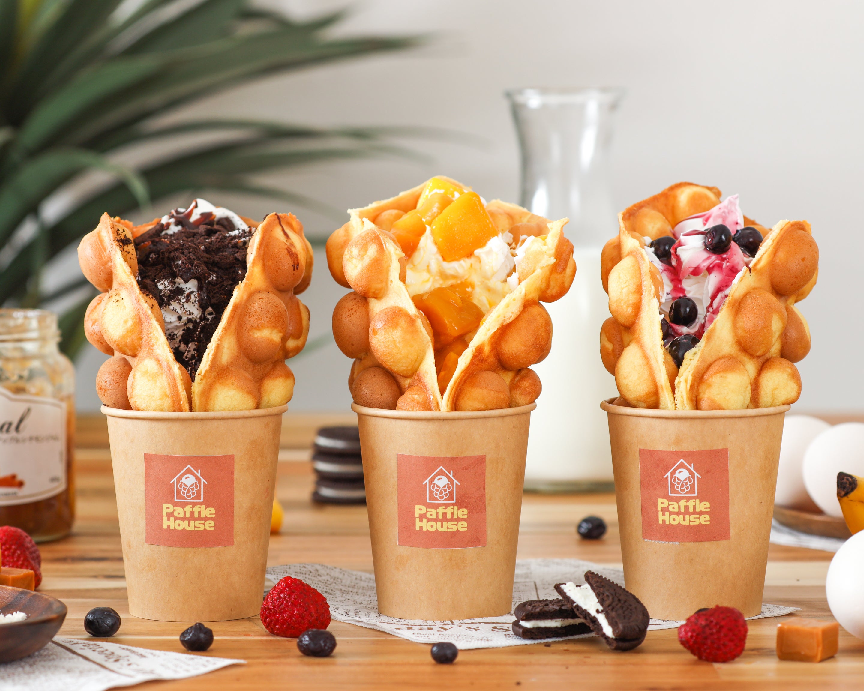 近年SNSで話題の泡のような形をしたモチモチのワッフルに、