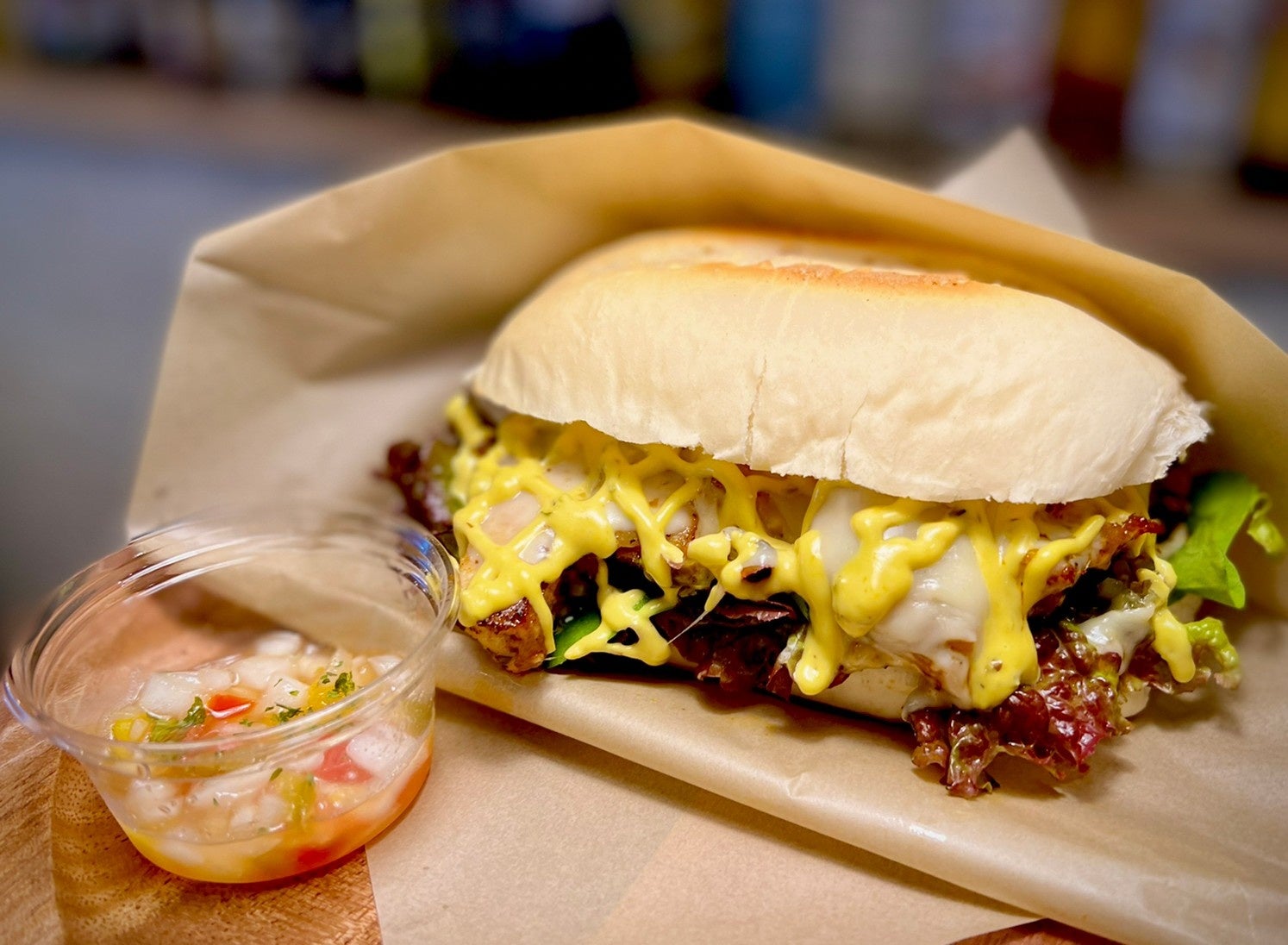 数種のハーブを調合したオリジナルのシーズニングで味付けした牛バラ肉のサンドイッチは、2種類のチーズが肉と絡まり食べ応えのあるボリューミーな仕上がり。